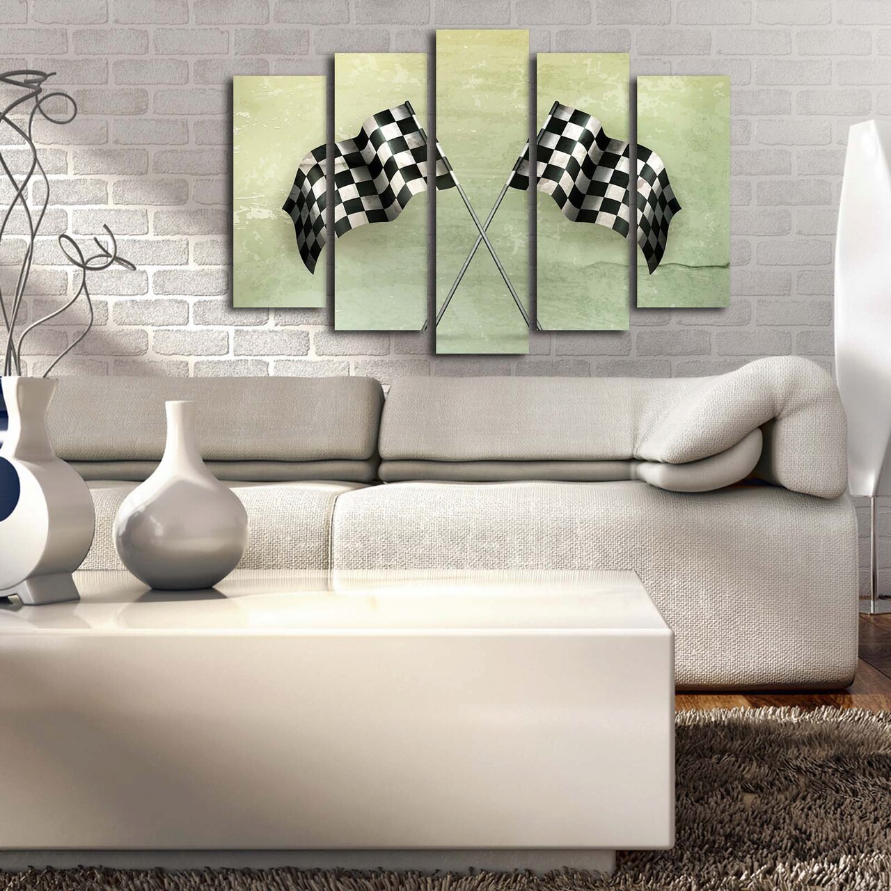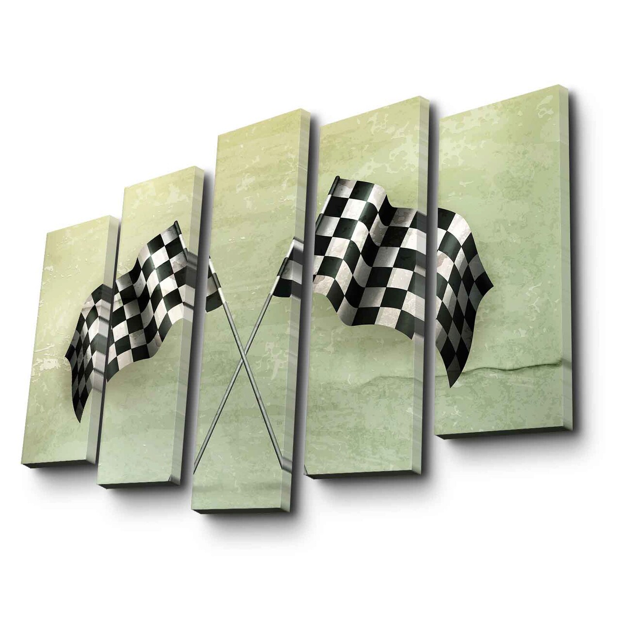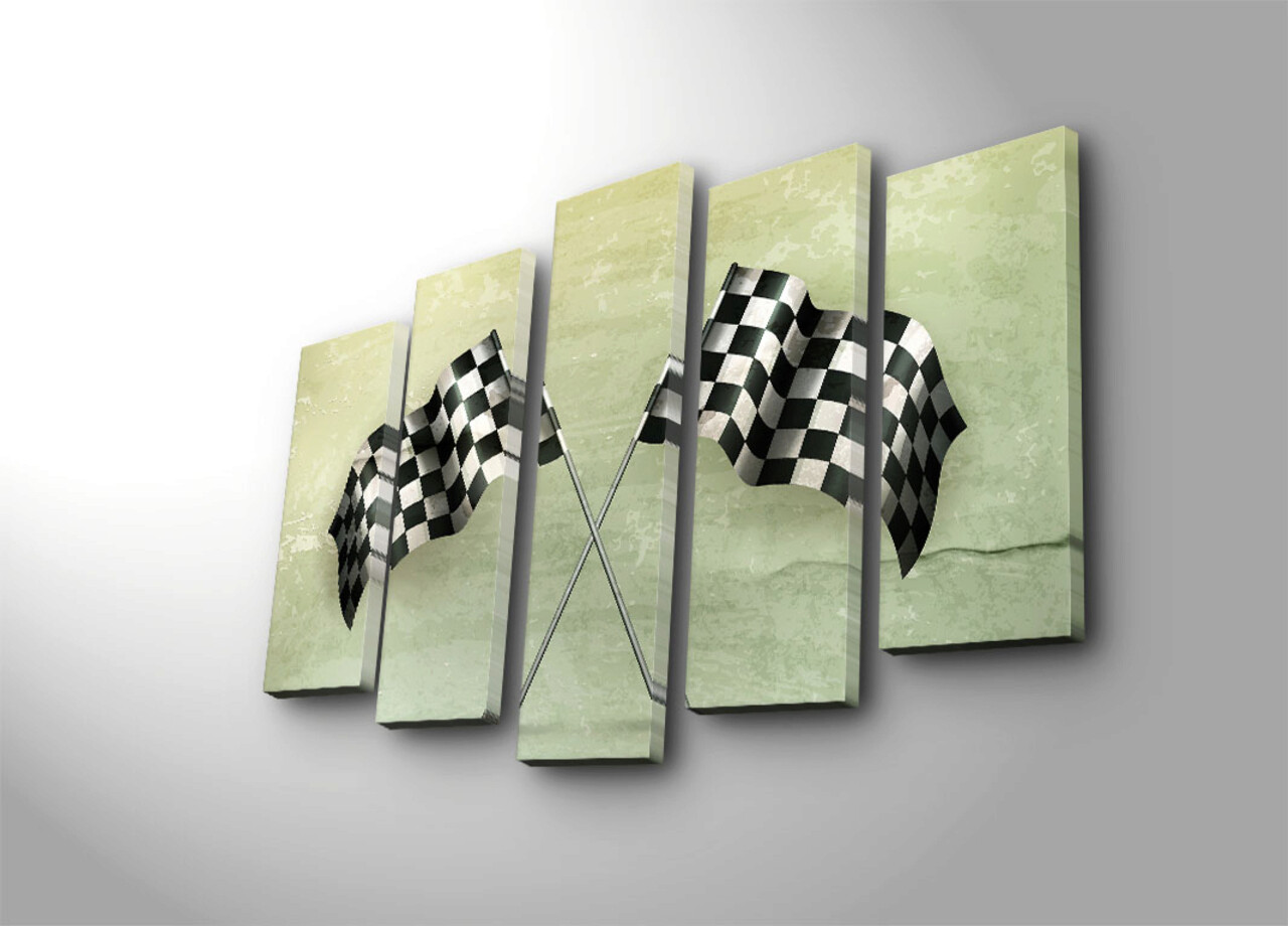 Tablou decorativ, 5PATK-204, 100% SUEDE CANVAS / Size: 19 x 70 cm (1 Piece) / 19 x 60 cm (2 Pieces) / 19 x 50 cm (2 Pieces) / Total Size: 105 x 70 cm / Frame: 100% Wooden (Thickness: 3 cm), Multicolor
