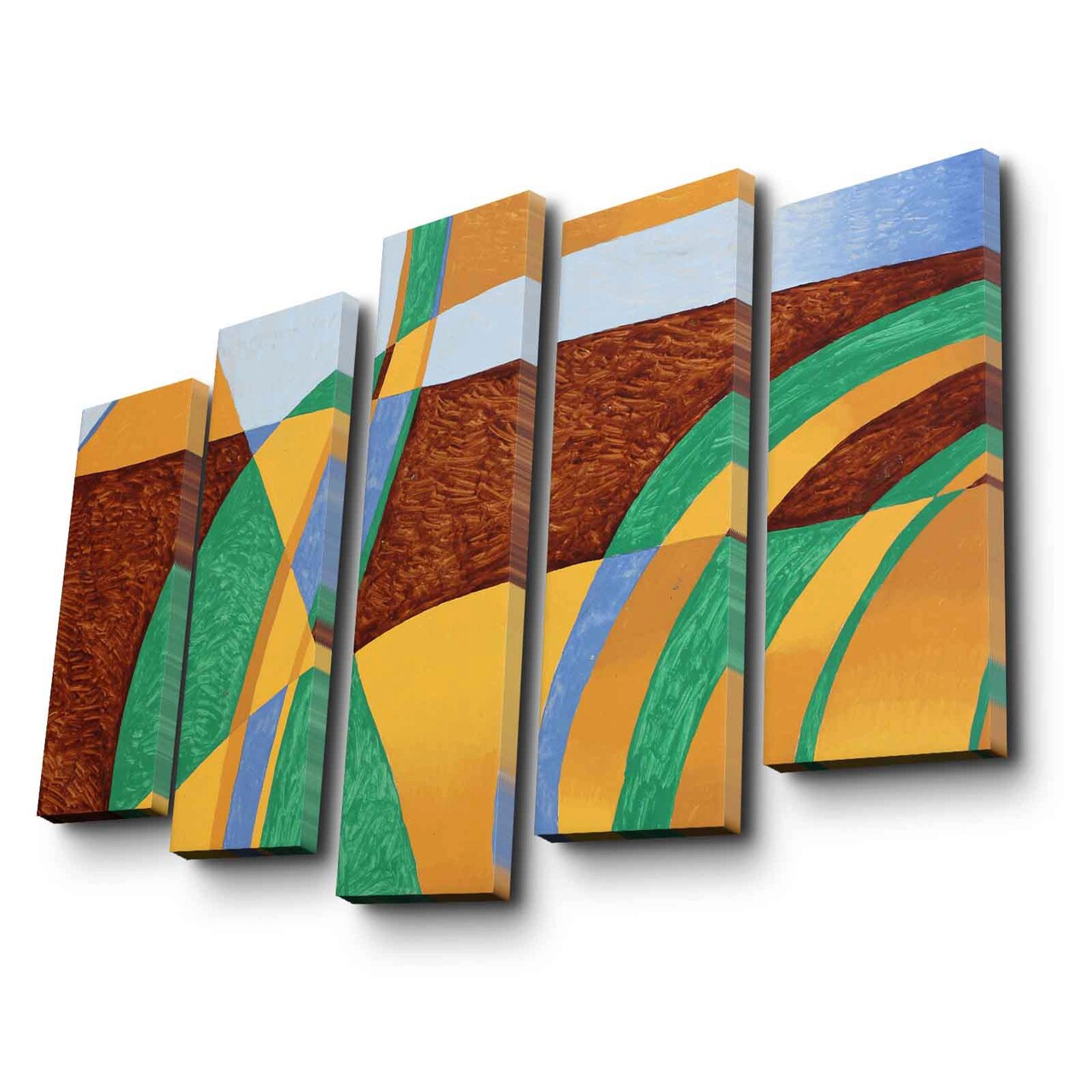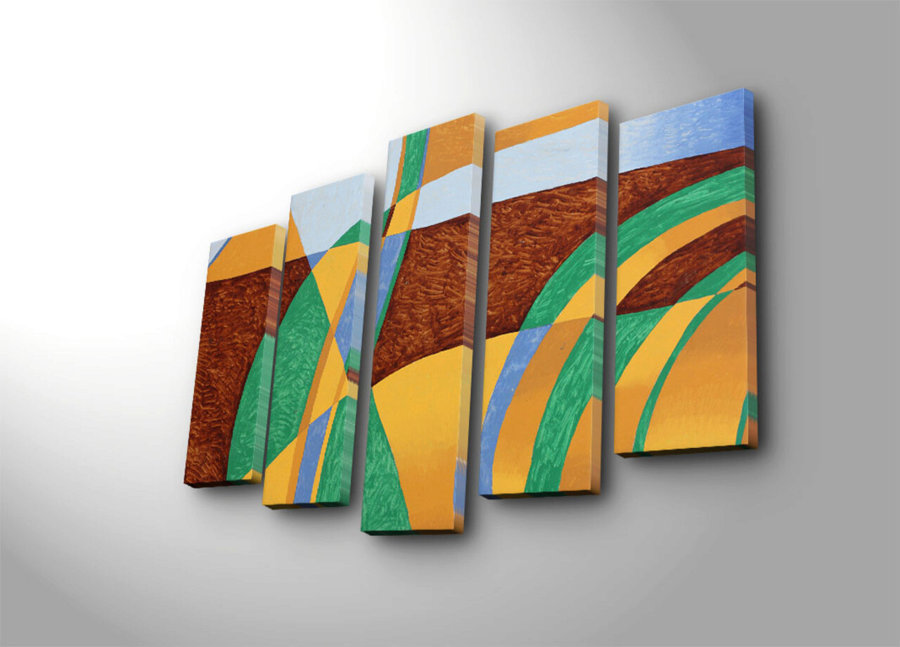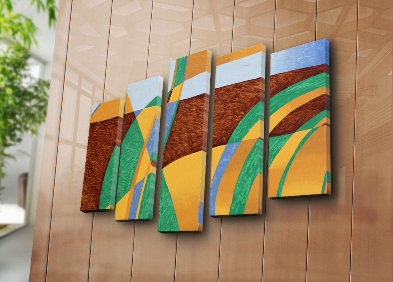 Tablou decorativ, 5PATK-209, 100% SUEDE CANVAS / Size: 19 x 70 cm (1 Piece) / 19 x 60 cm (2 Pieces) / 19 x 50 cm (2 Pieces) / Total Size: 105 x 70 cm / Frame: 100% Wooden (Thickness: 3 cm), Multicolor