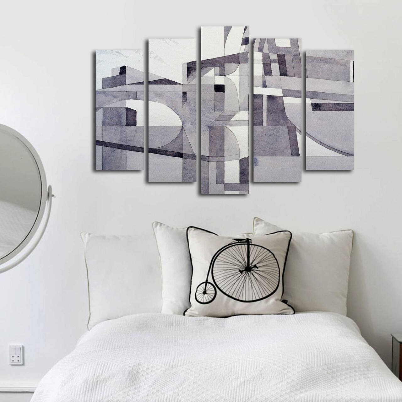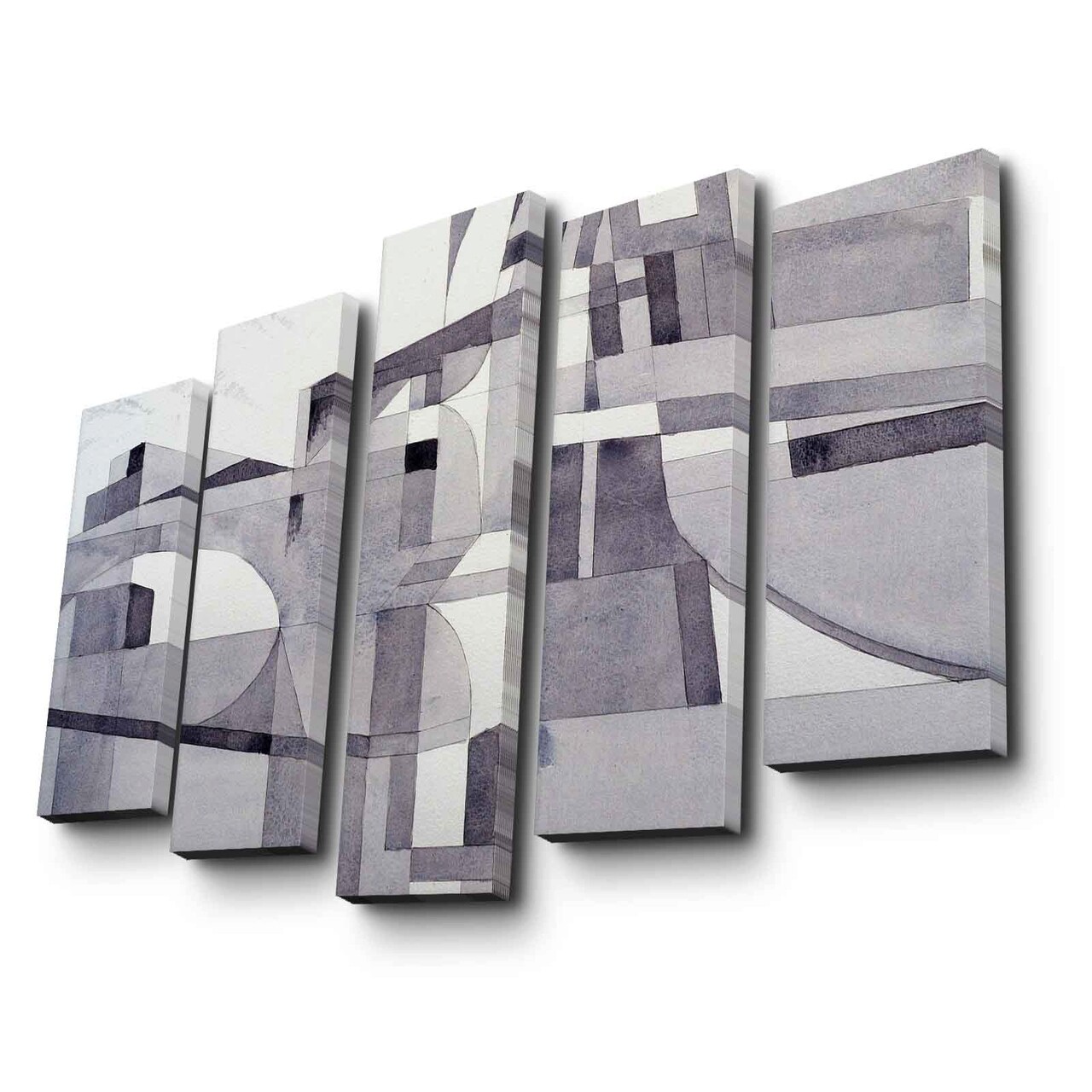 Tablou decorativ, 5PATK-210, 100% SUEDE CANVAS / Size: 19 x 70 cm (1 Piece) / 19 x 60 cm (2 Pieces) / 19 x 50 cm (2 Pieces) / Total Size: 105 x 70 cm / Frame: 100% Wooden (Thickness: 3 cm), Multicolor