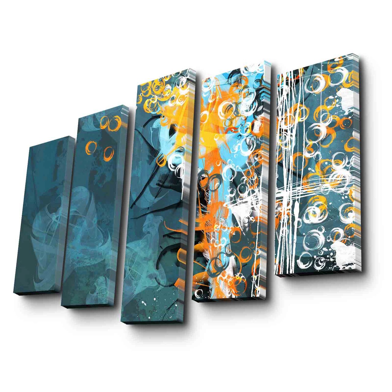 Tablou decorativ, 5PATK-214, 100% SUEDE CANVAS / Size: 19 x 70 cm (1 Piece) / 19 x 60 cm (2 Pieces) / 19 x 50 cm (2 Pieces) / Total Size: 105 x 70 cm / Frame: 100% Wooden (Thickness: 3 cm), Multicolor