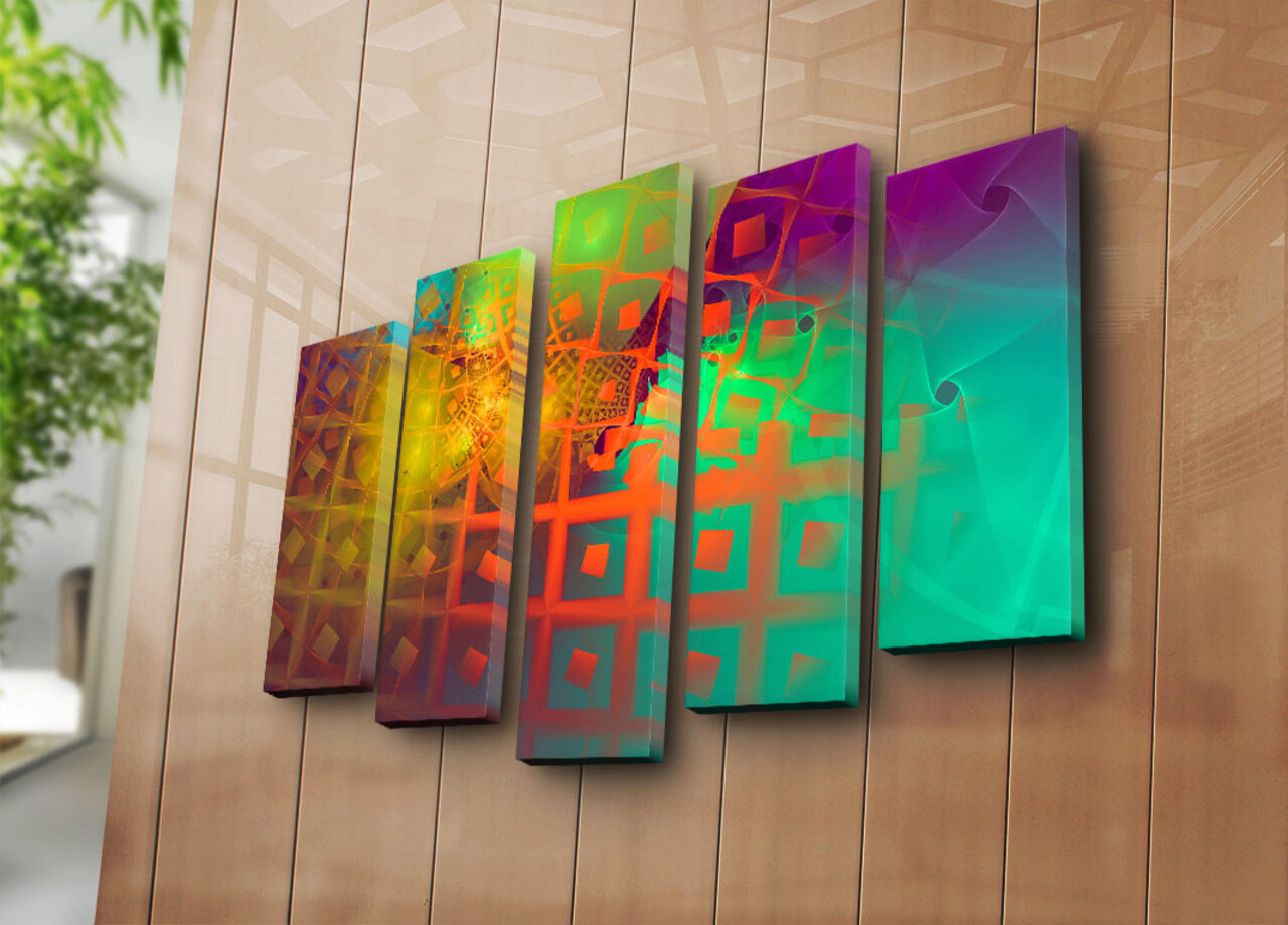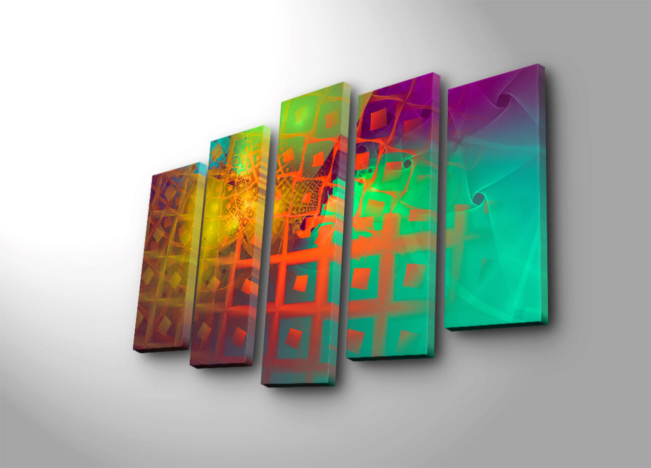 Tablou decorativ, 5PATK-221, 100% SUEDE CANVAS / Size: 19 x 70 cm (1 Piece) / 19 x 60 cm (2 Pieces) / 19 x 50 cm (2 Pieces) / Total Size: 105 x 70 cm / Frame: 100% Wooden (Thickness: 3 cm), Multicolor