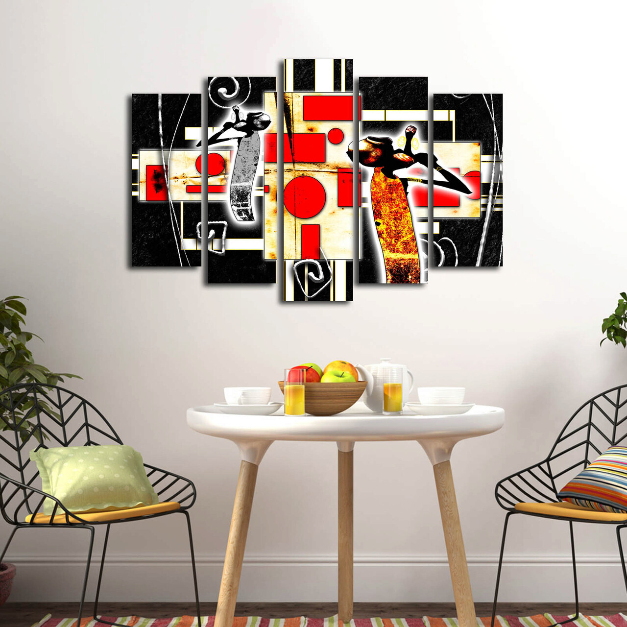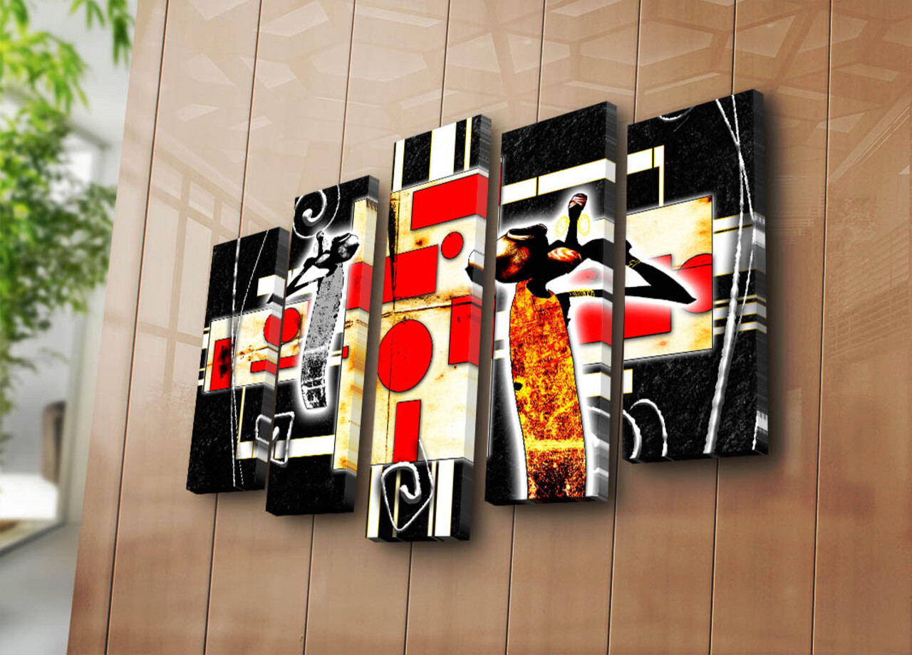 Tablou decorativ, 5PATK-226, 100% SUEDE CANVAS / Size: 19 x 70 cm (1 Piece) / 19 x 60 cm (2 Pieces) / 19 x 50 cm (2 Pieces) / Total Size: 105 x 70 cm / Frame: 100% Wooden (Thickness: 3 cm), Multicolor