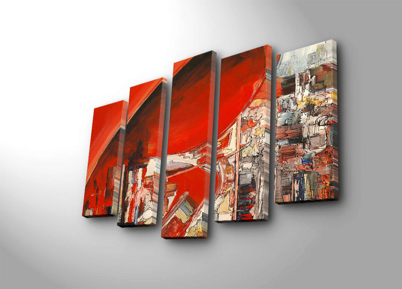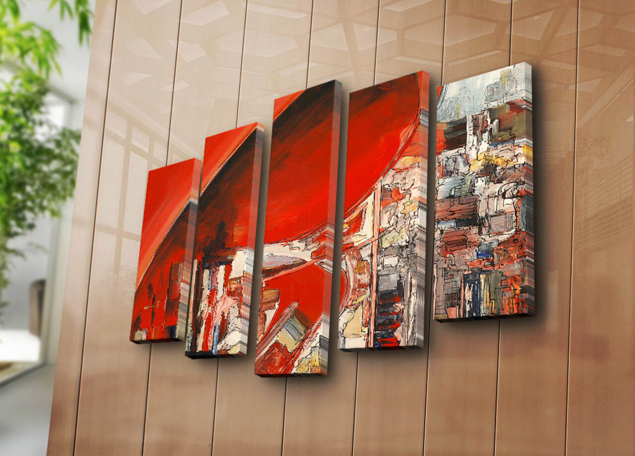 Tablou decorativ, 5PATK-249, 100% SUEDE CANVAS / Size: 19 x 70 cm (1 Piece) / 19 x 60 cm (2 Pieces) / 19 x 50 cm (2 Pieces) / Total Size: 105 x 70 cm / Frame: 100% Wooden (Thickness: 3 cm), Multicolor