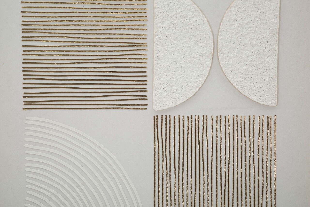 Linii esentiale si forme geometrice fine se intrepatrund armonios intr-o compozitie cu gust rafinat si contemporan. Perfect pentru decorarea eleganta a spatiilor moderne si luminoase, oferind echilibru si stil.