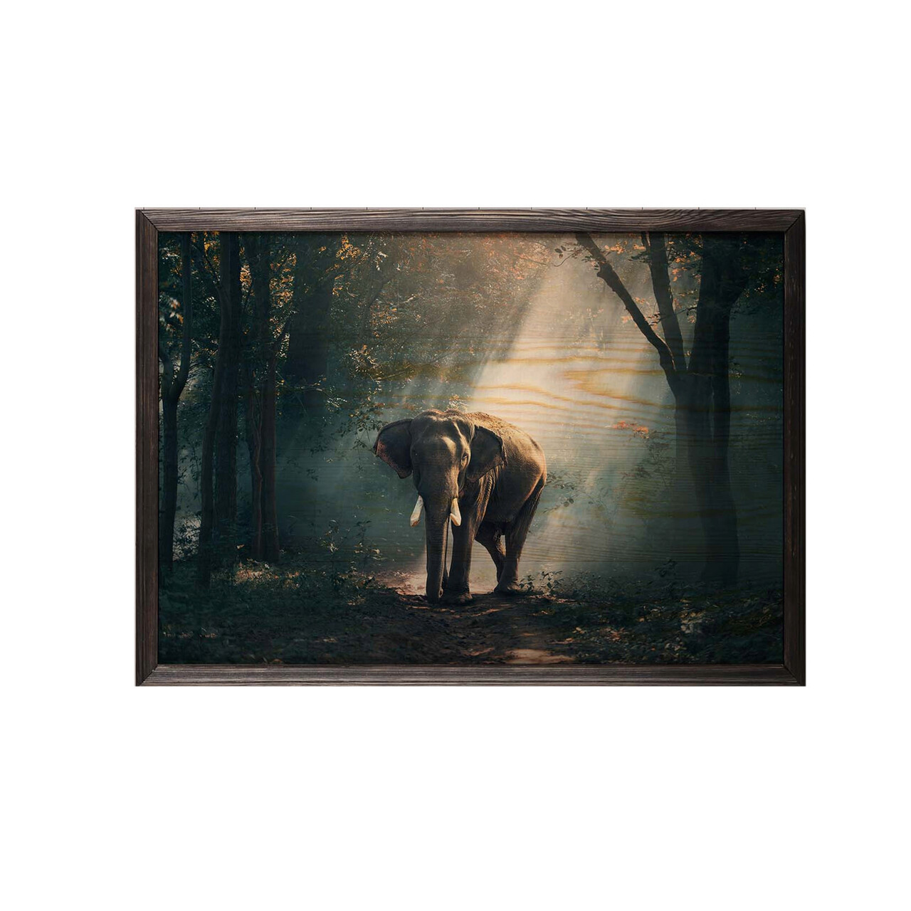 Tablou decorativ, Alone Elephant, Lemn, Lemn, Multicolor