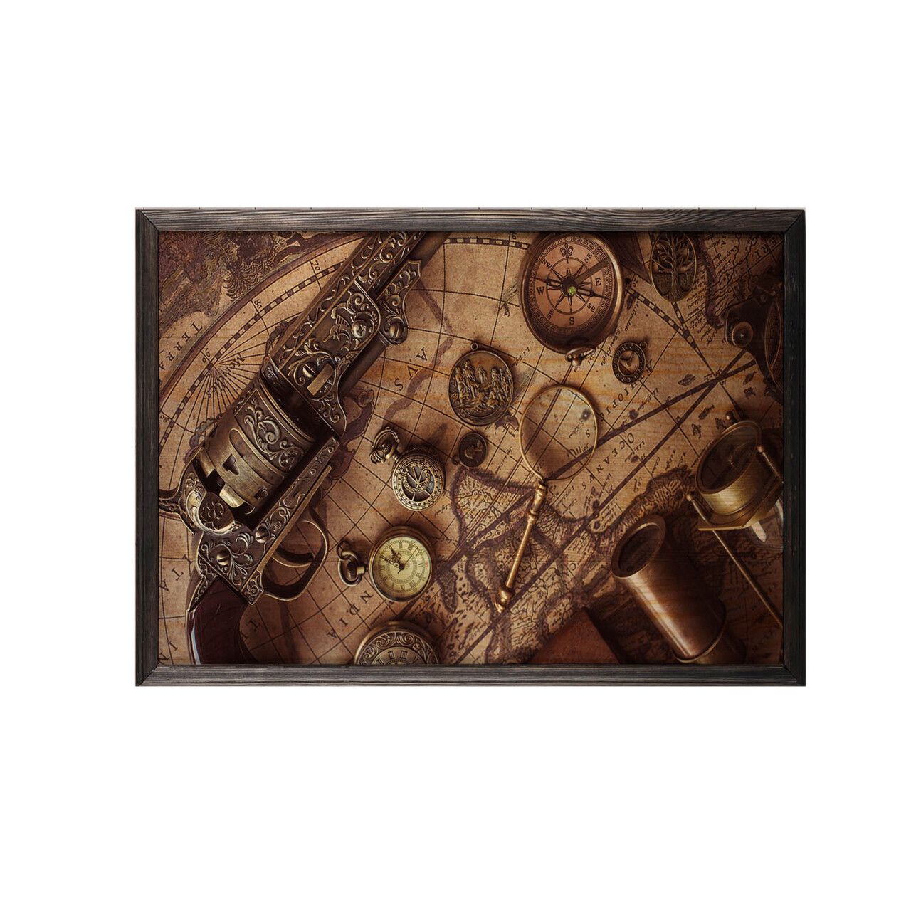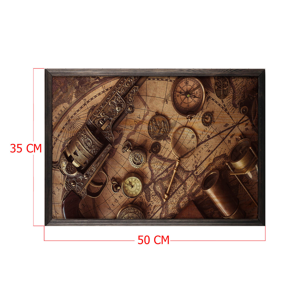 Tablou decorativ, Antic Map, Lemn, Lemn, Multicolor