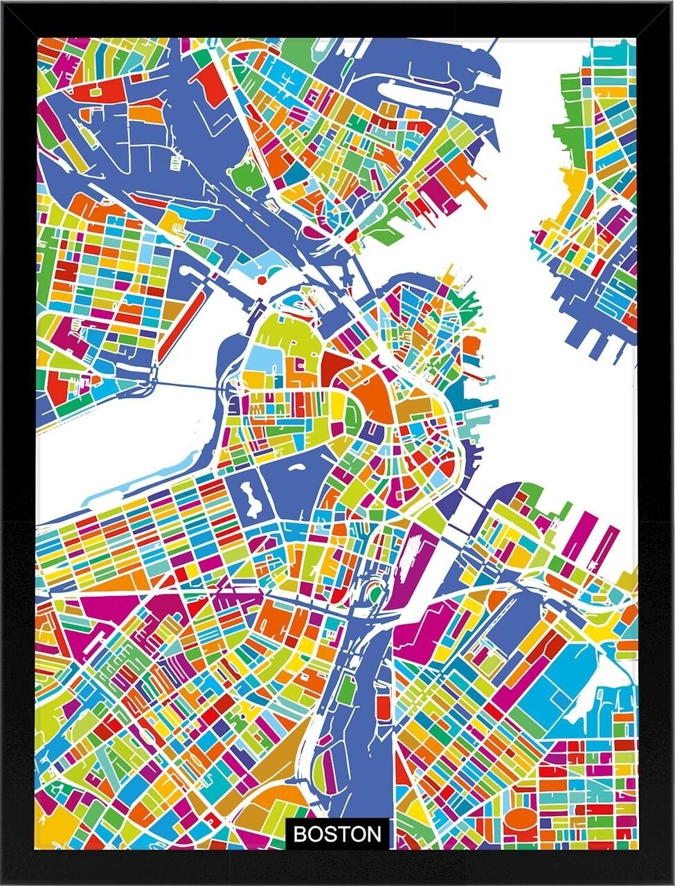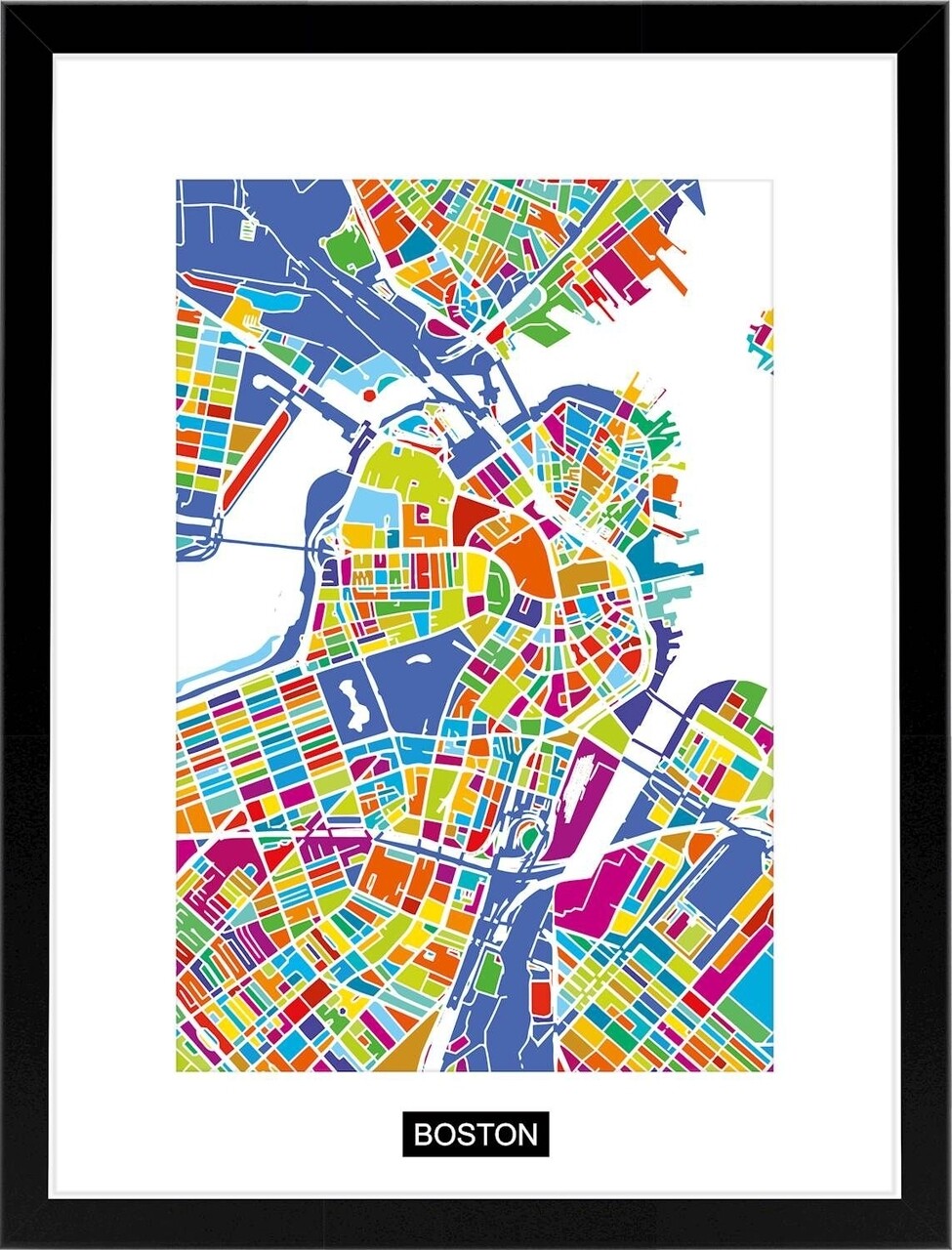 Tablou decorativ Boston Map, Homemania, 32x42 cm, MDF/sticla