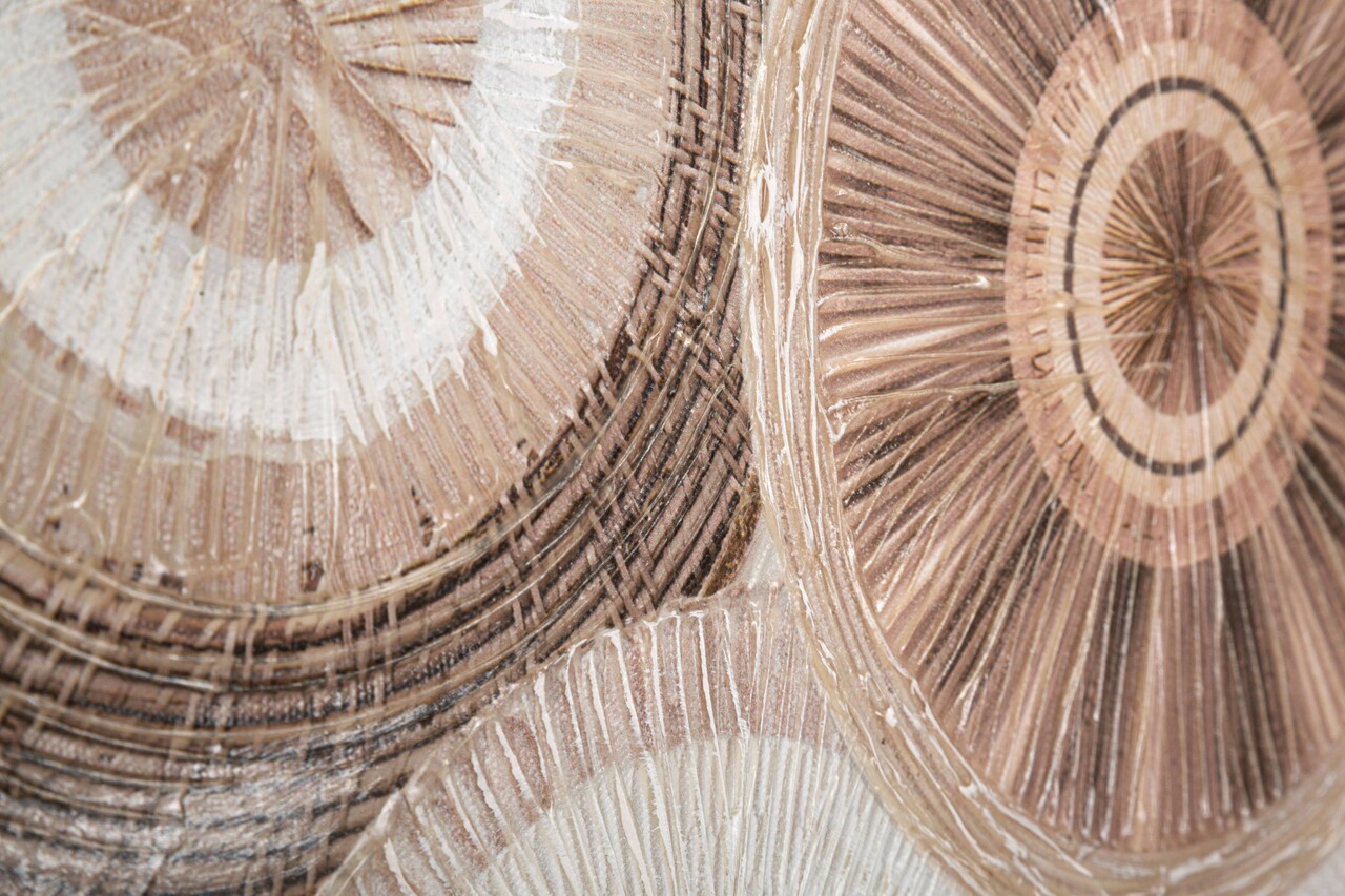 Pictura pe panza cu rama, imbogatita cu decoruri elegante in relief care formeaza motive geometrice in tonuri calde si invaluitoare.