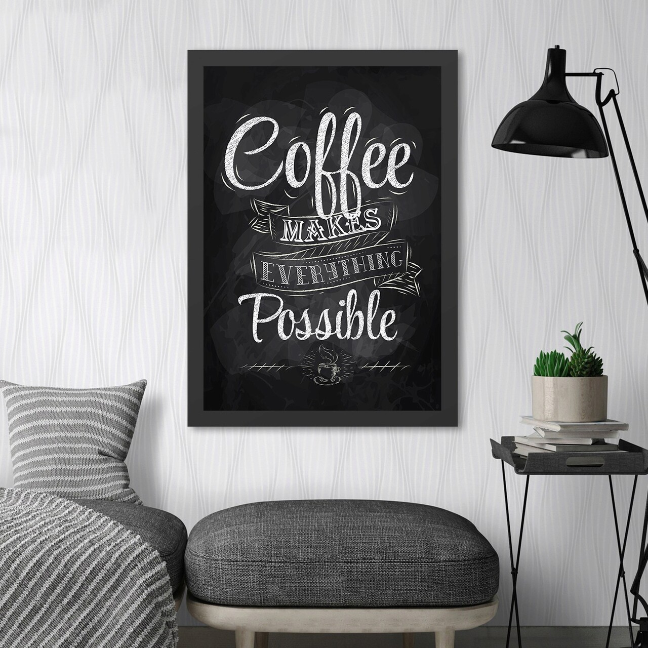 Tablou decorativ, Coffee 2 (55 x 75), MDF , Polistiren, Alb/Negru