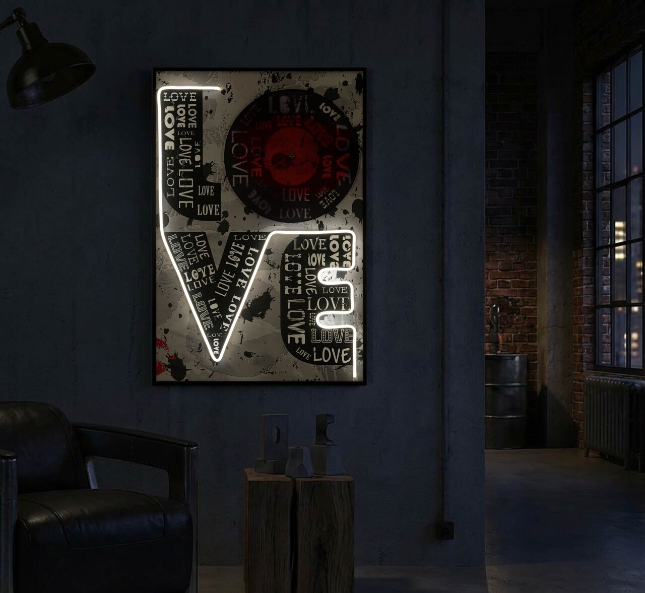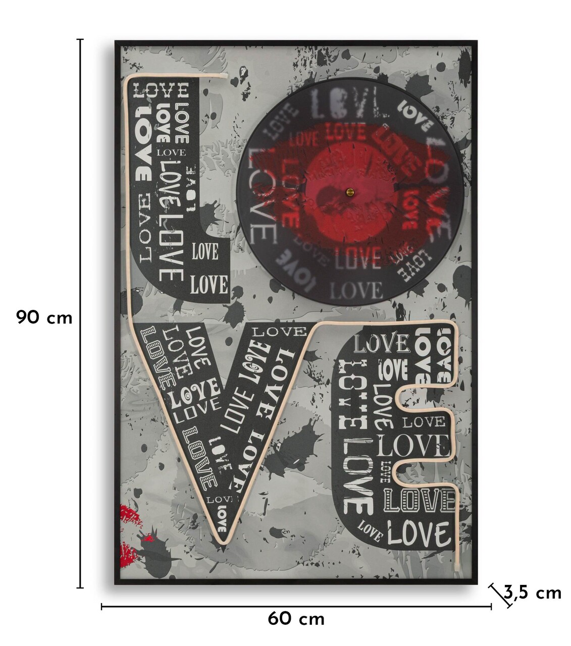 Tablou decorativ cu LED, Mauro Ferretti, Love, 60x90 cm, canvas/MDF, multicolor
