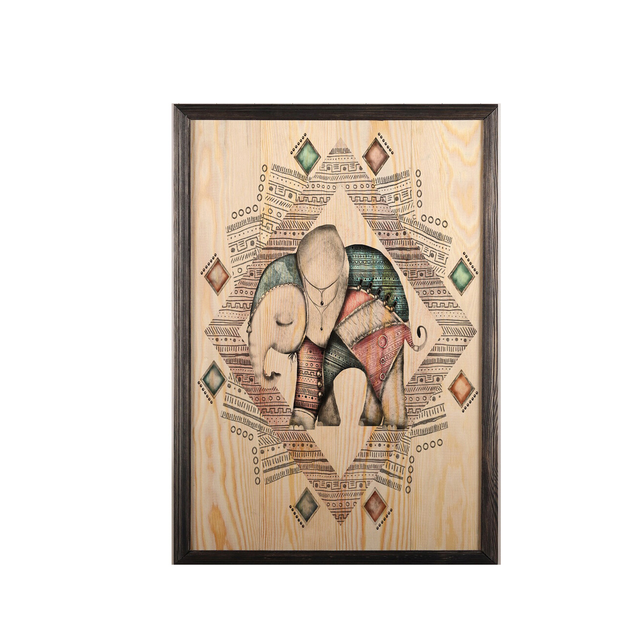 Tablou decorativ, Cute Elephant XL, Lemn, Lemn, Multicolor