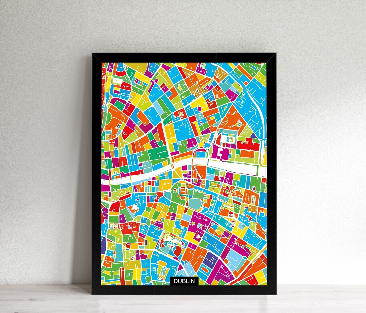 Tablou decorativ Dublin Map, Homemania, 32x42 cm, MDF/sticla