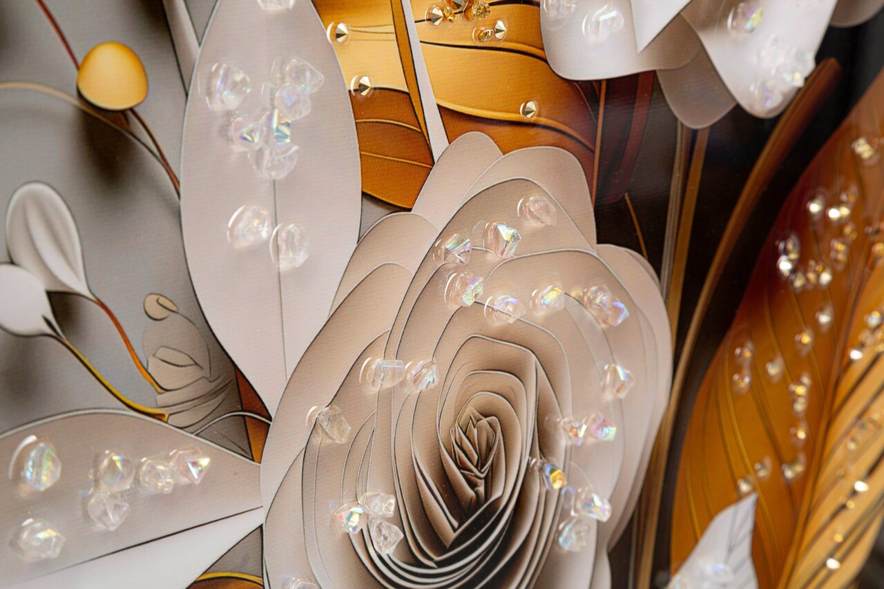Tablou decorativ Flora M, Mauro Ferretti, 42x62 cm, metal/lemn de brad/canvas, multicolor