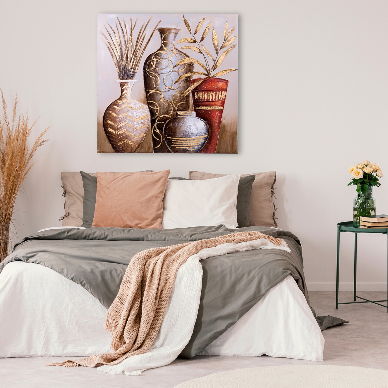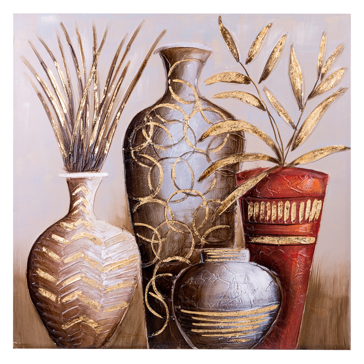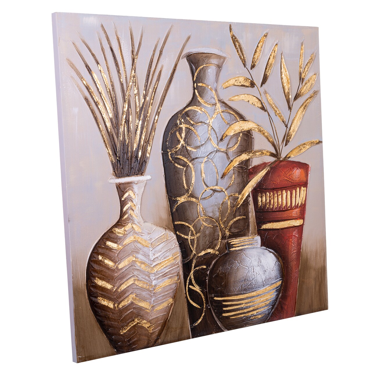 Tablou decorativ Floral, Creaciones Meng, 100x100 cm, canvas pictat manual