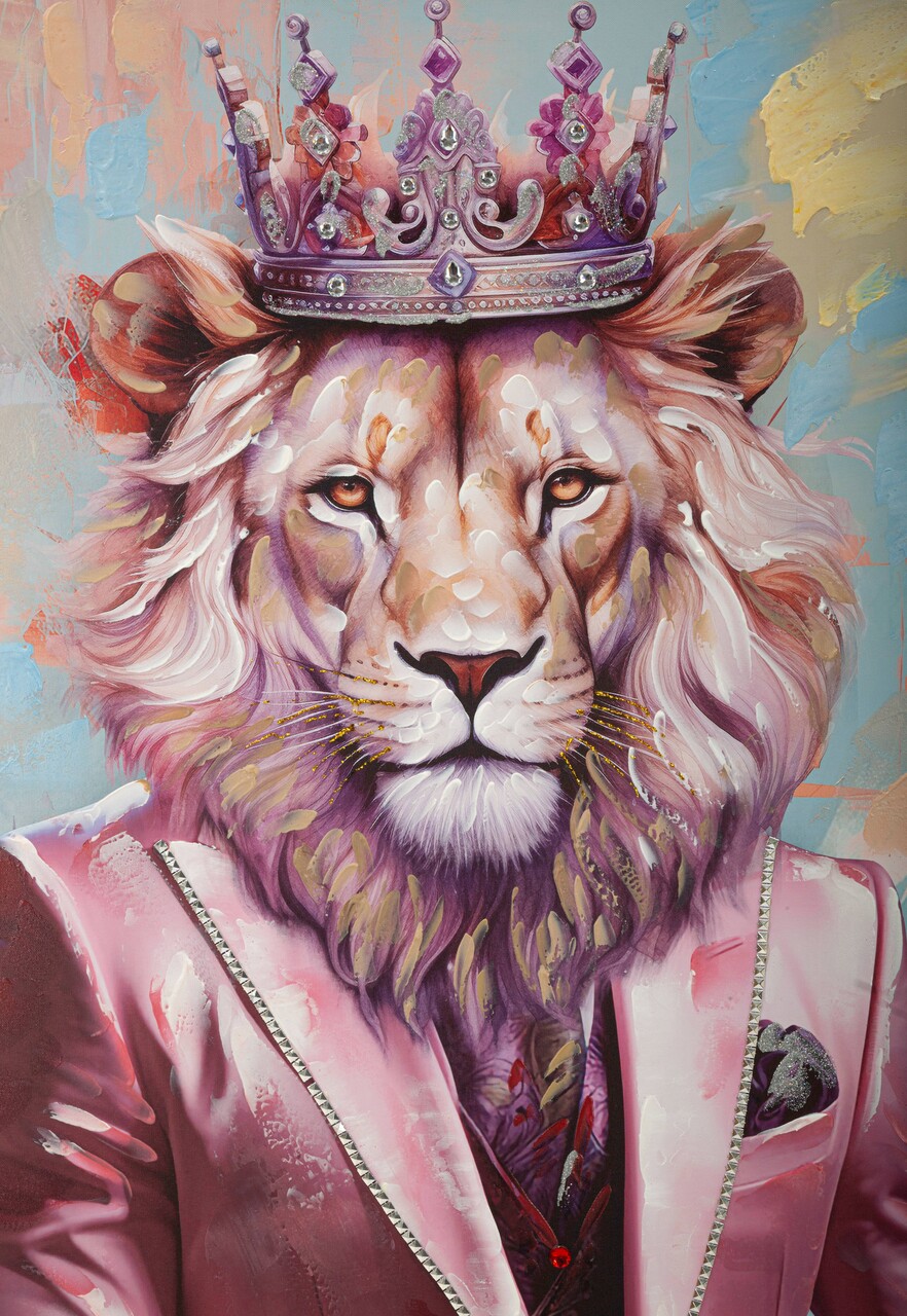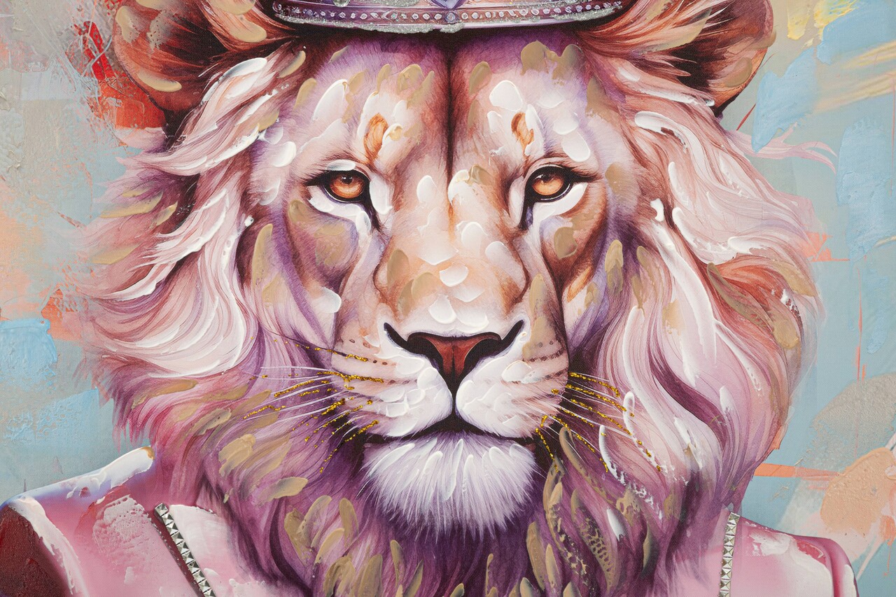 Tablou decorativ King-A, Mauro Ferretti, 82x122 cm, metal/lemn de brad/canvas, multicolor