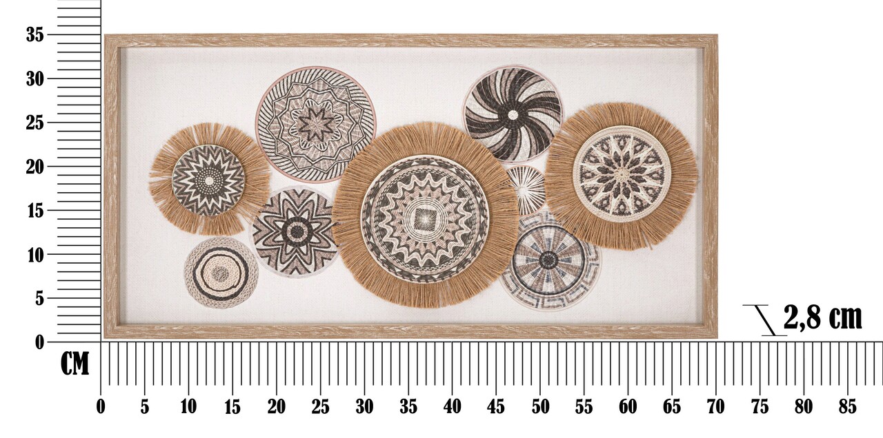 Pictura pe panza cu rama, imbogatita cu decoruri elegante in relief care formeaza motive geometrice in tonuri calde si invaluitoare.