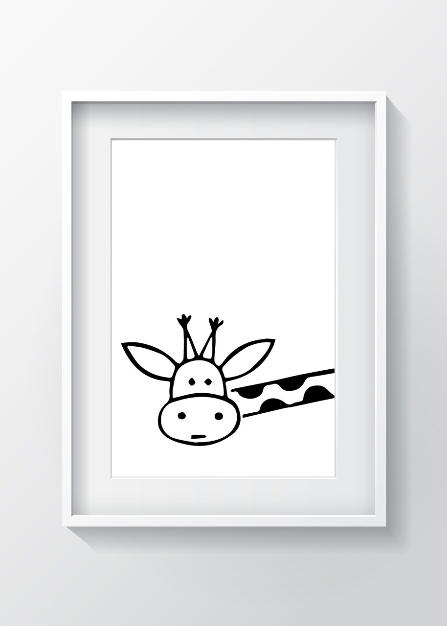Tablou decorativ Minimal Giraffe, Oyo Kids, 29x24 cm, lemn/MDF, multicolor