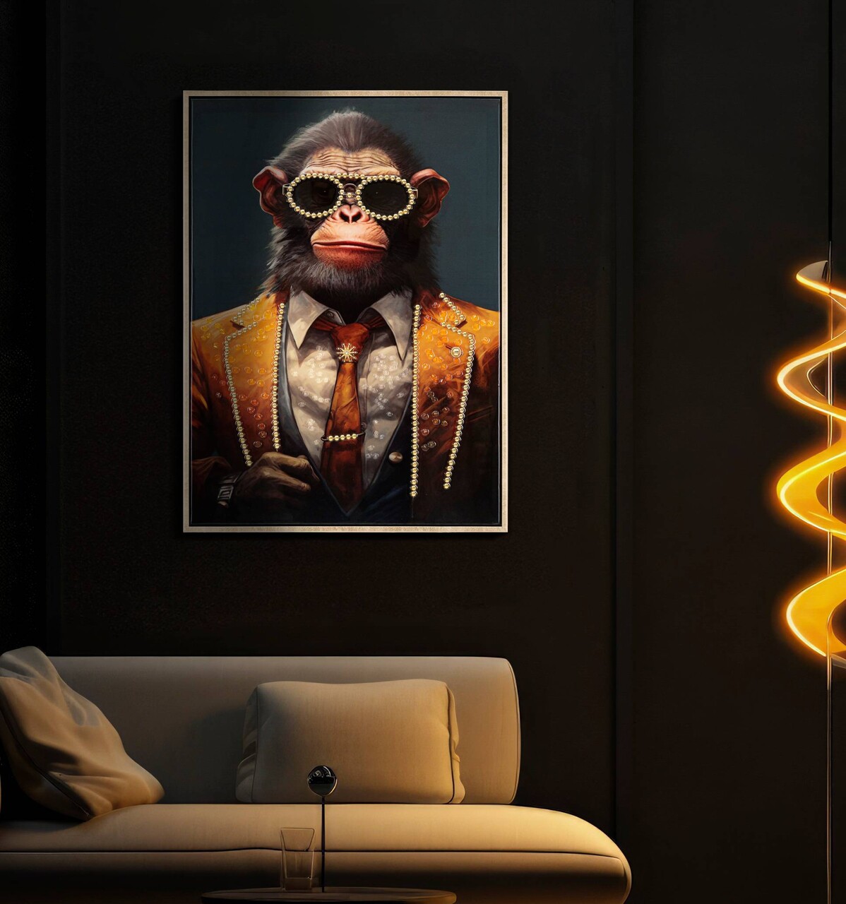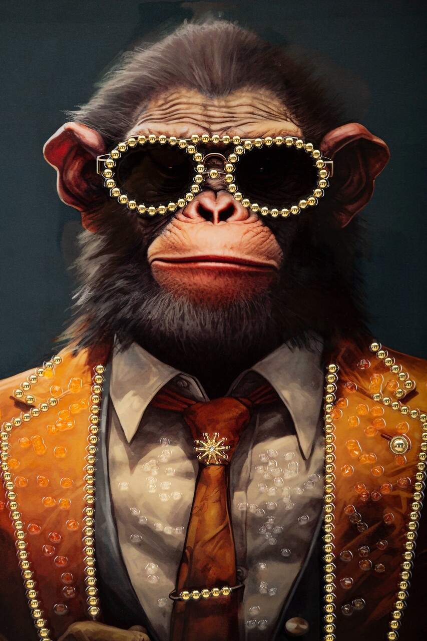 Tablou decorativ Monky, Mauro Ferretti, 52.5x72.5 cm, metal/lemn de brad/canvas, multicolor