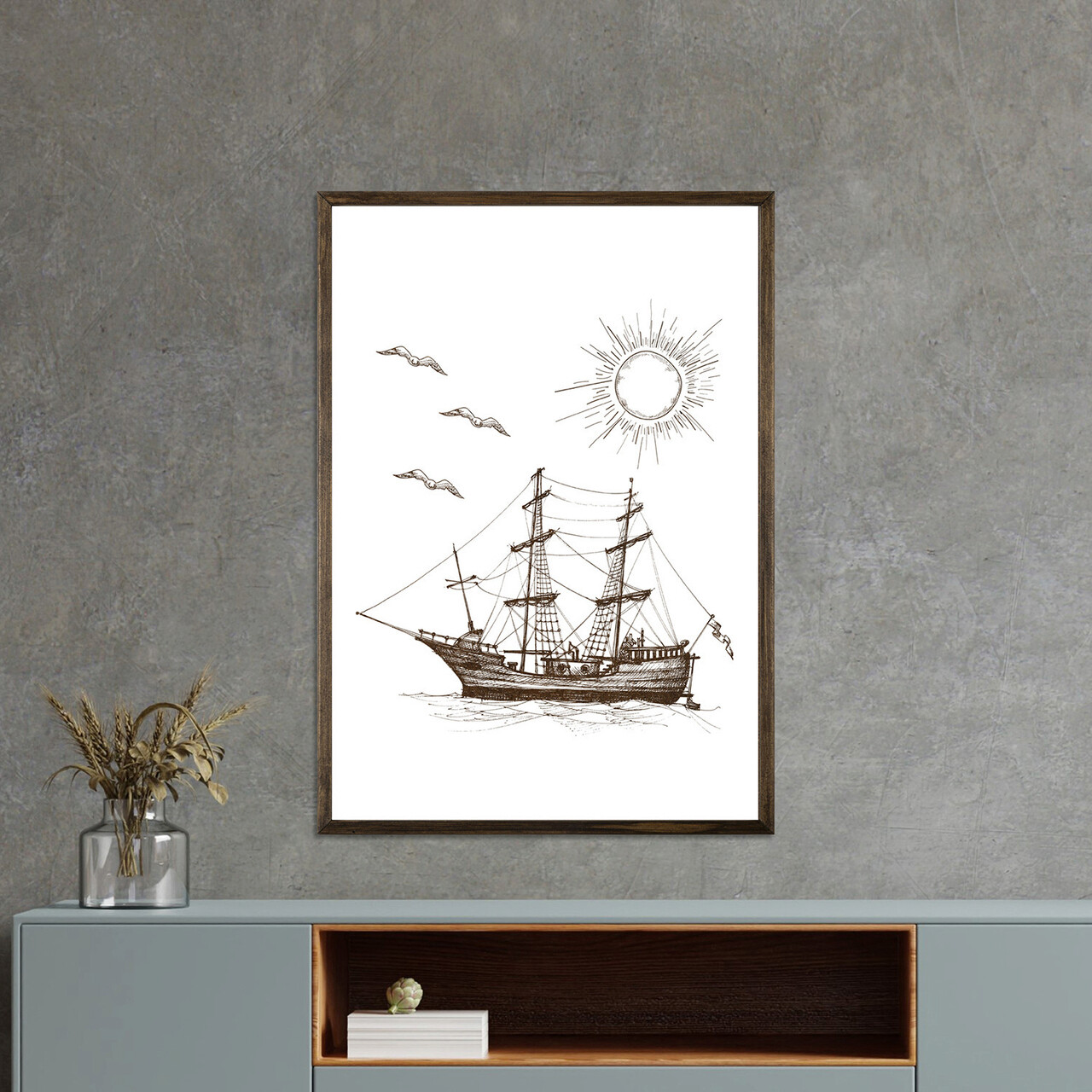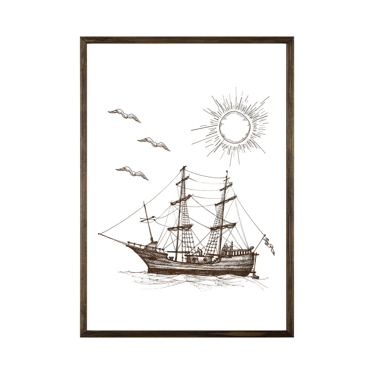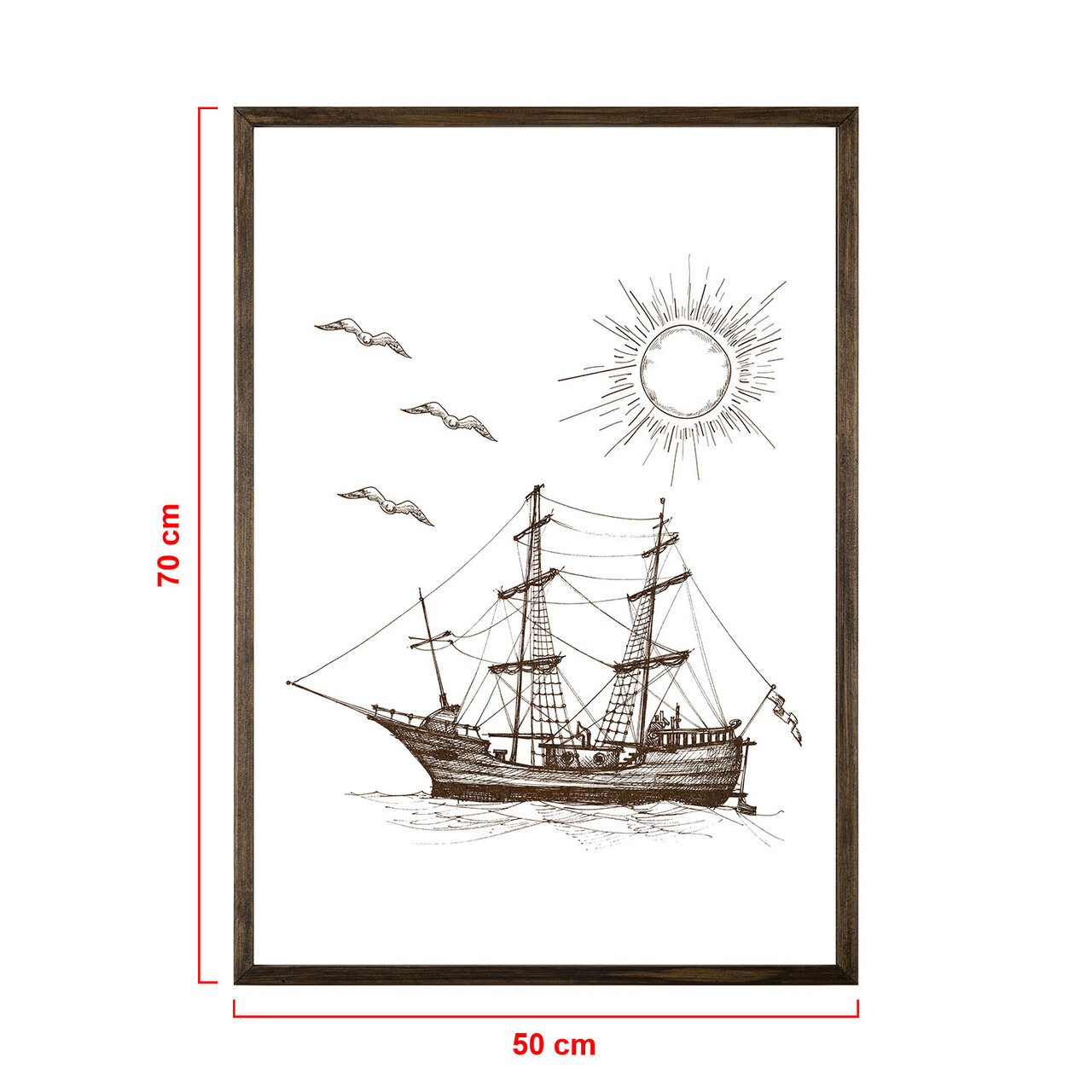 Tablou decorativ, TD003, Lemn, Desenat manual, Natural