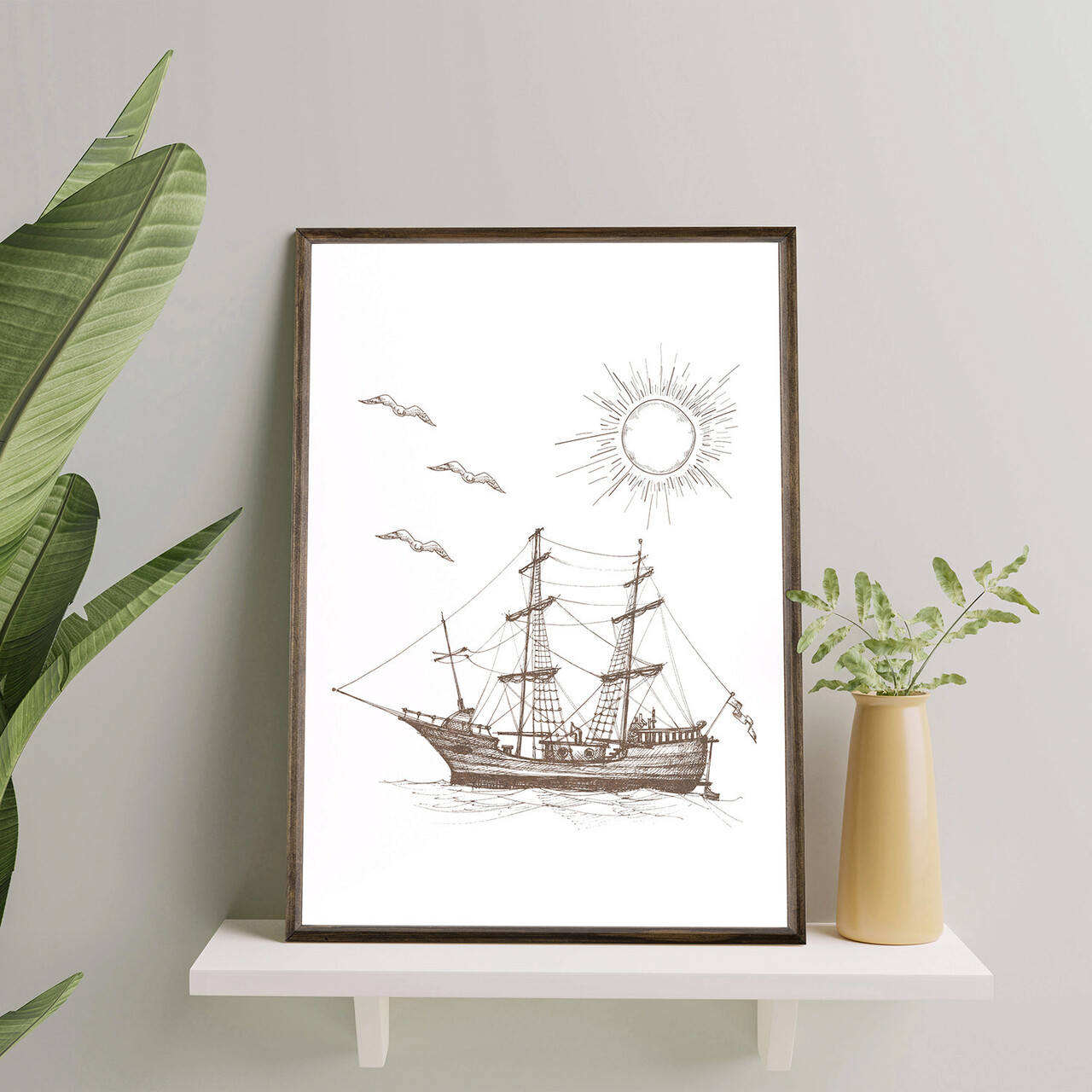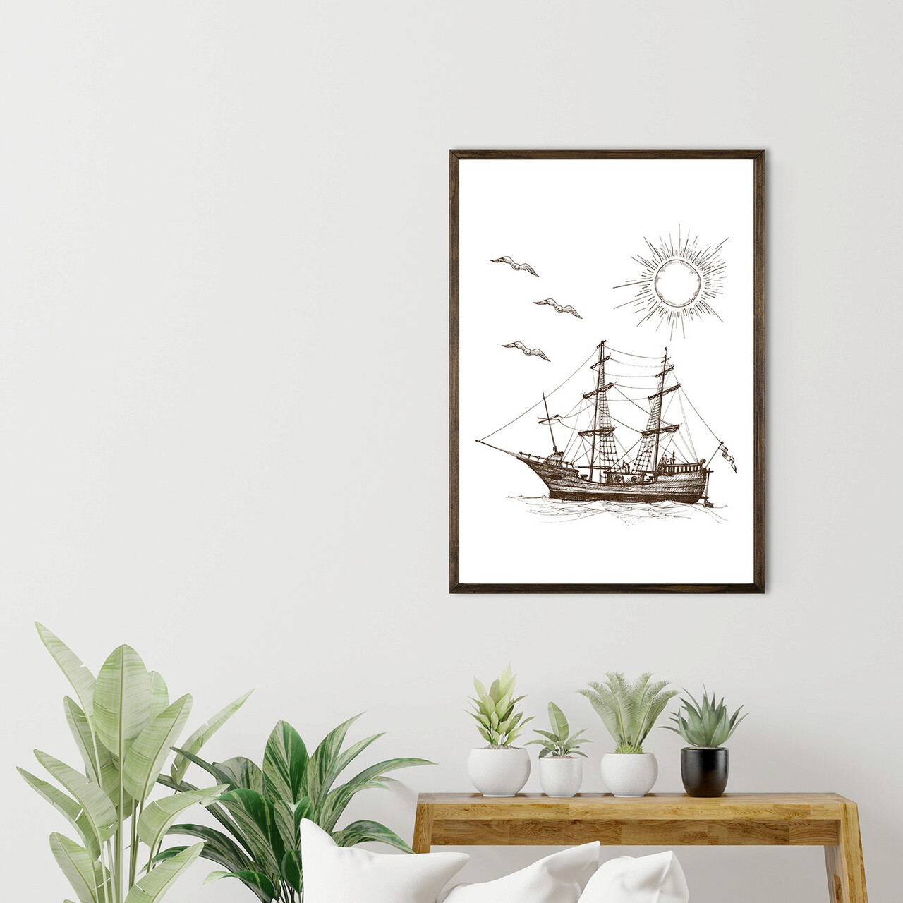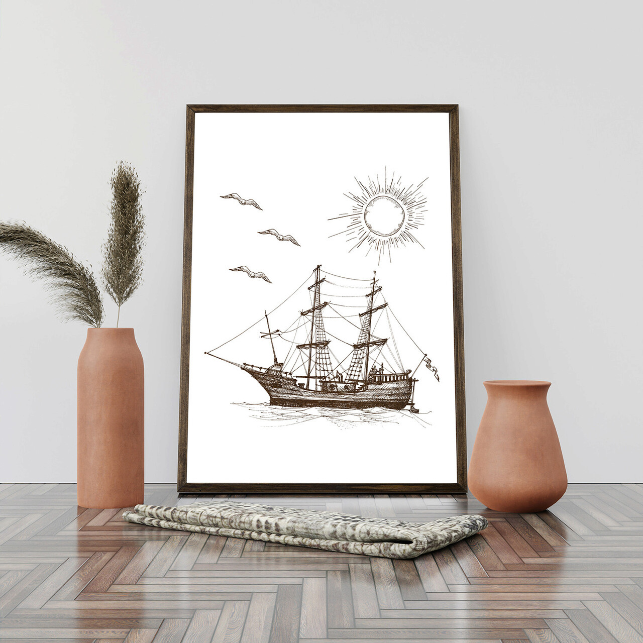 Tablou decorativ, TD003, Lemn, Desenat manual, Natural