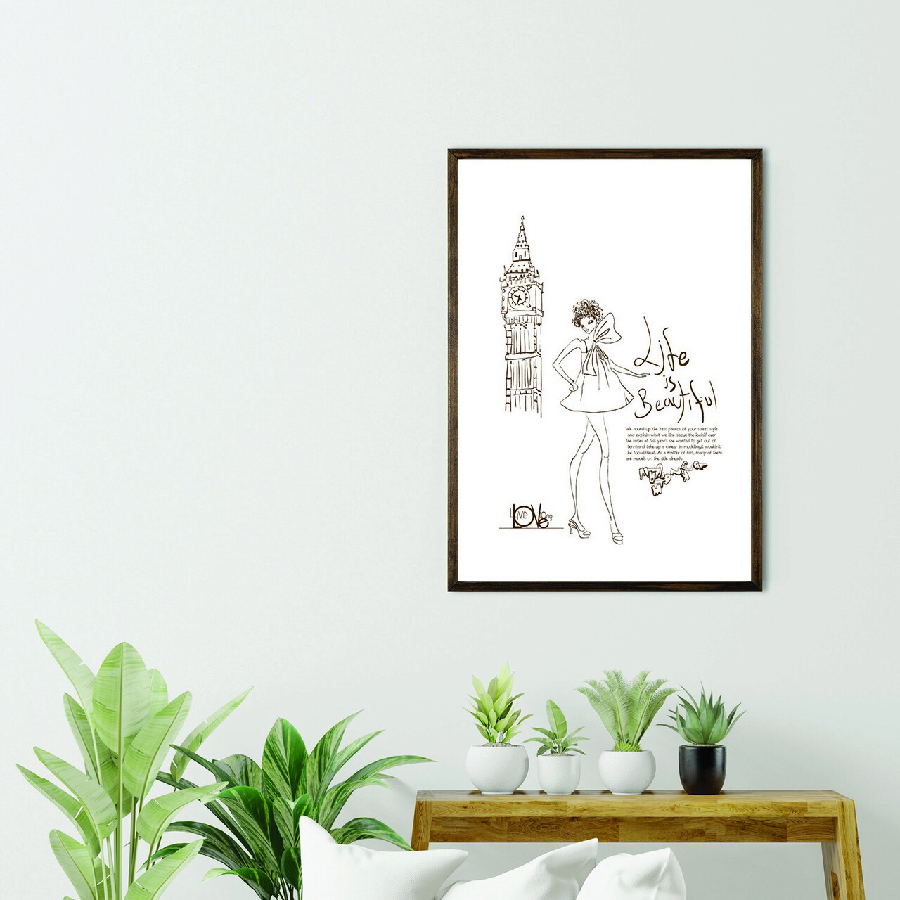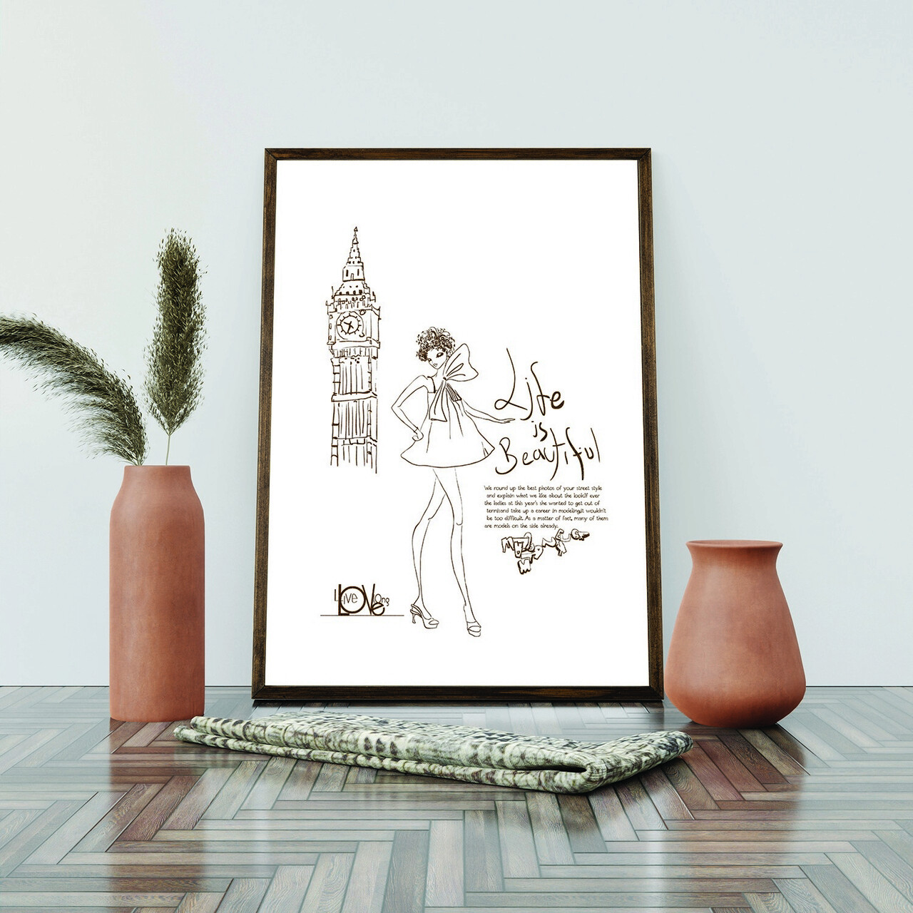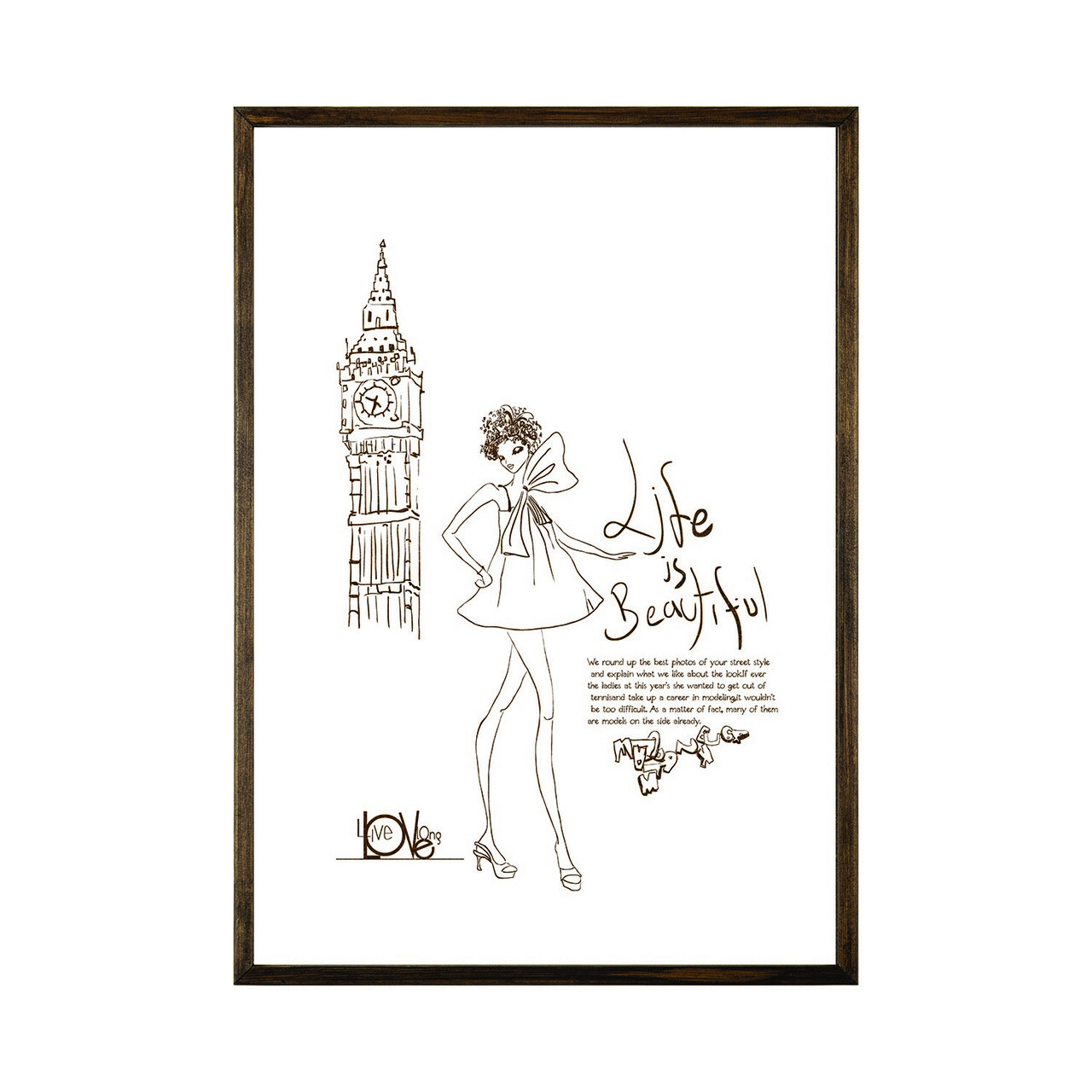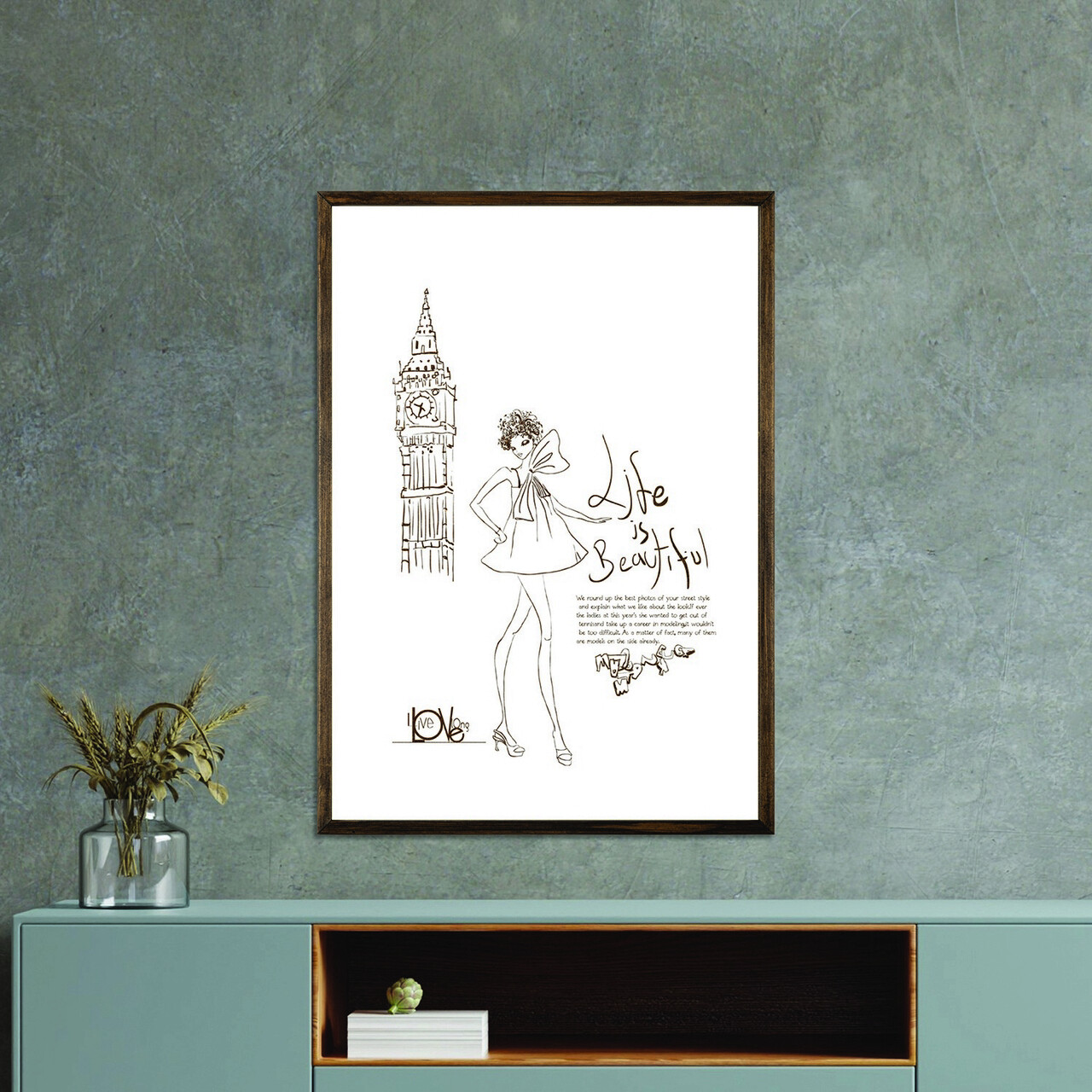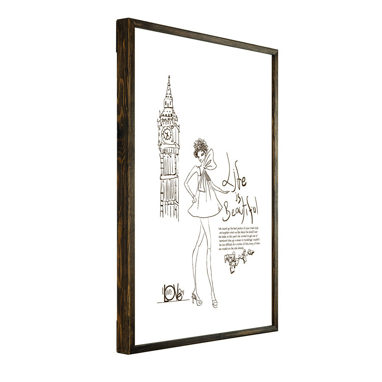 Tablou decorativ, TD004, Lemn, Desenat manual, Natural