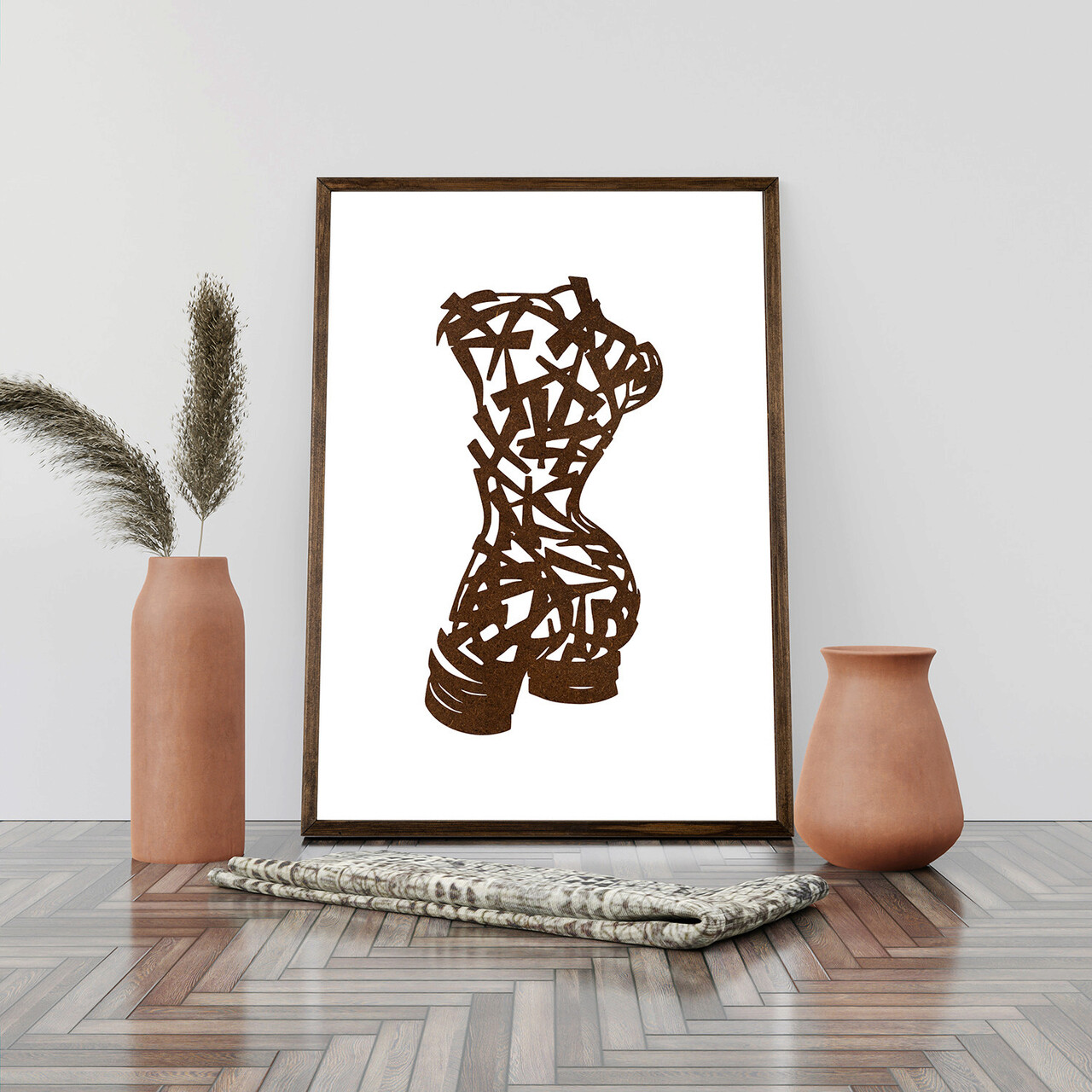 Tablou decorativ, TD031, Lemn, Desenat manual, Natural