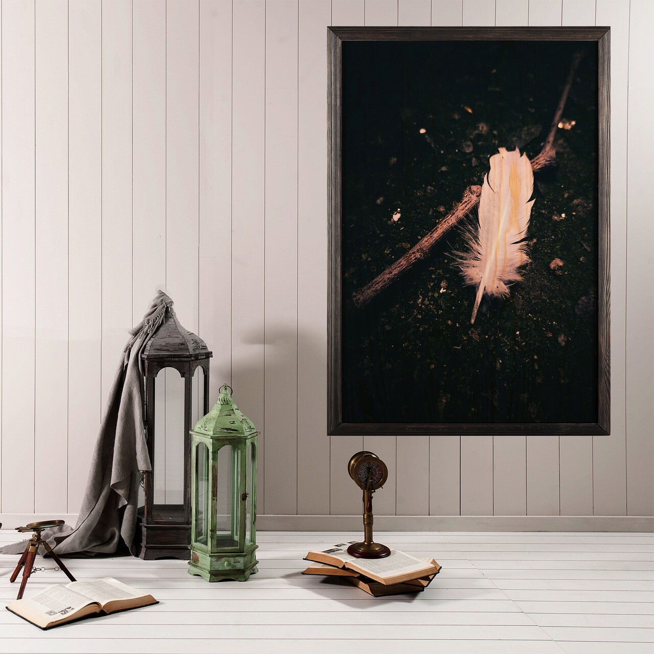 Tablou decorativ, White Feather, Lemn, Lemn, Multicolor