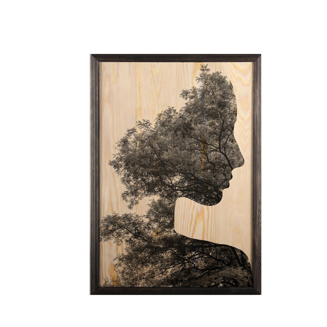 Tablou decorativ, Woman Forest, Lemn, Lemn, Multicolor