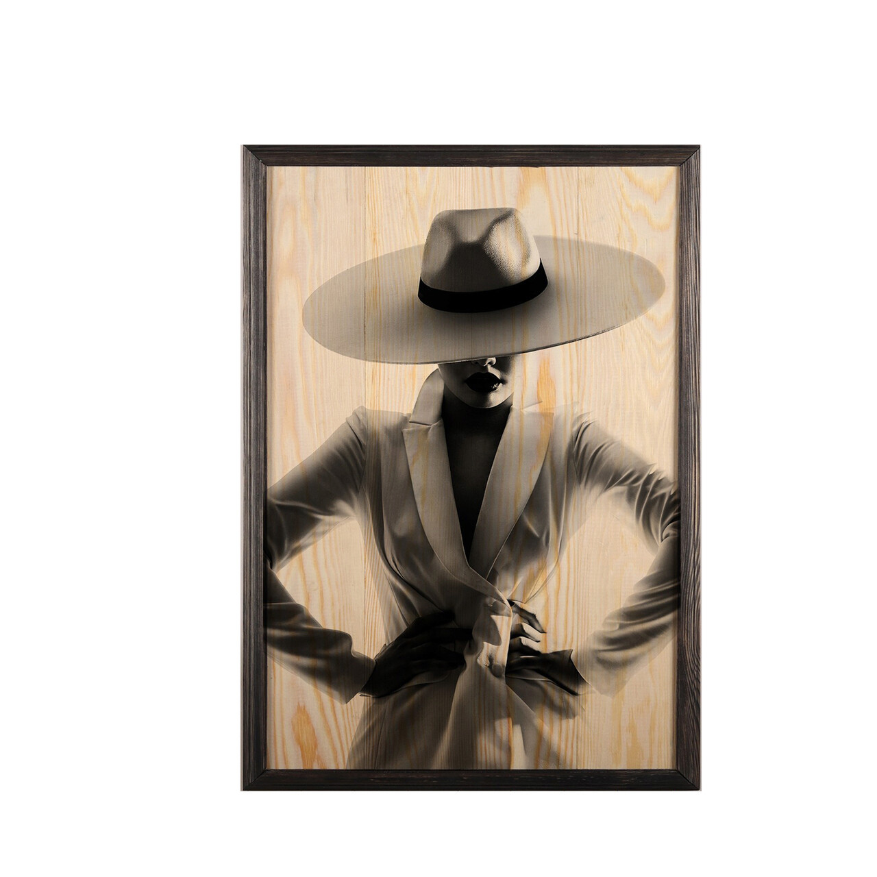 Tablou decorativ, Woman Hat, Lemn, Lemn, Multicolor