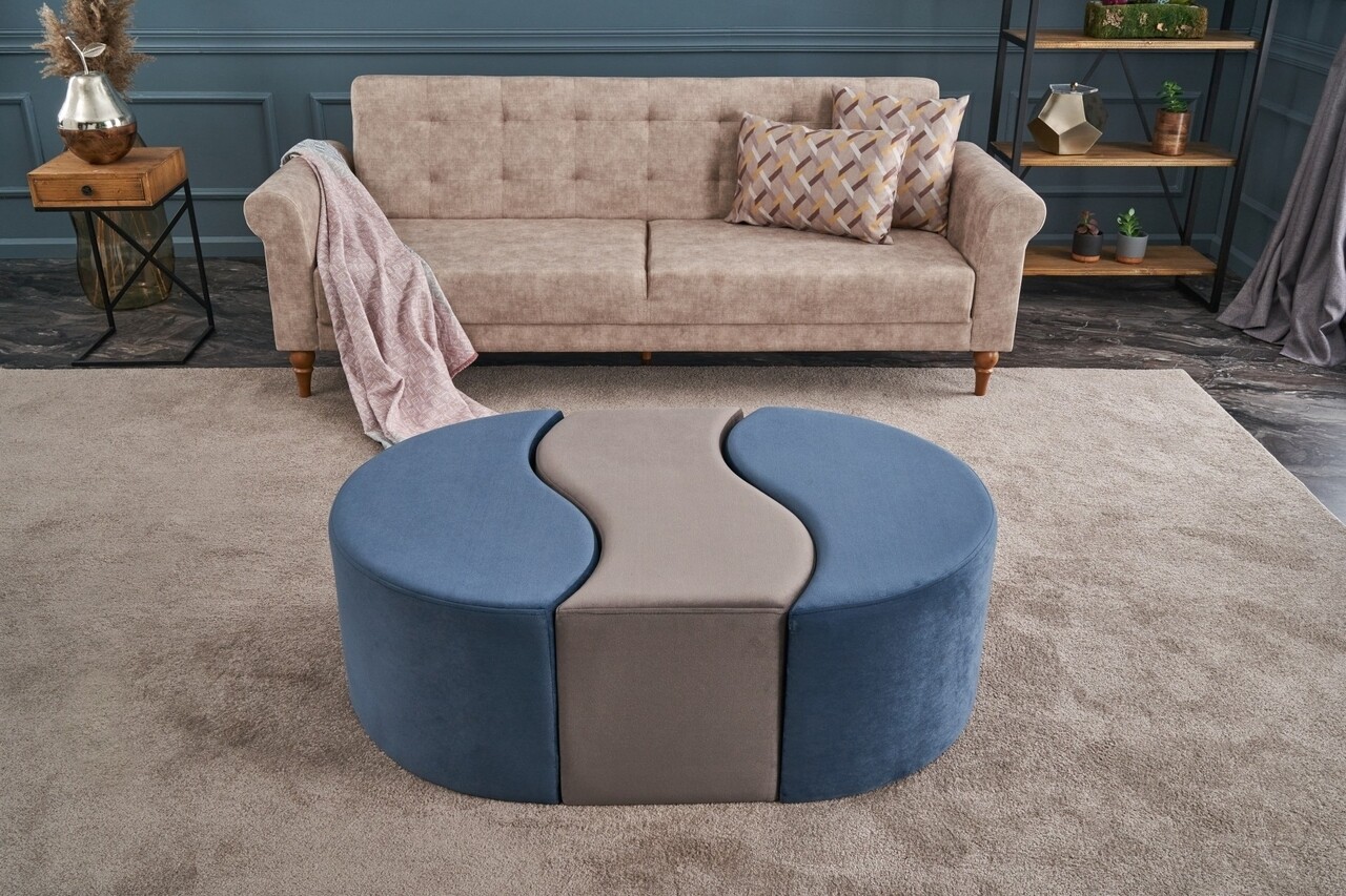 Taburet Alya Puf, Balcab Home, 120x80x40 cm, lemn, albastru/mink