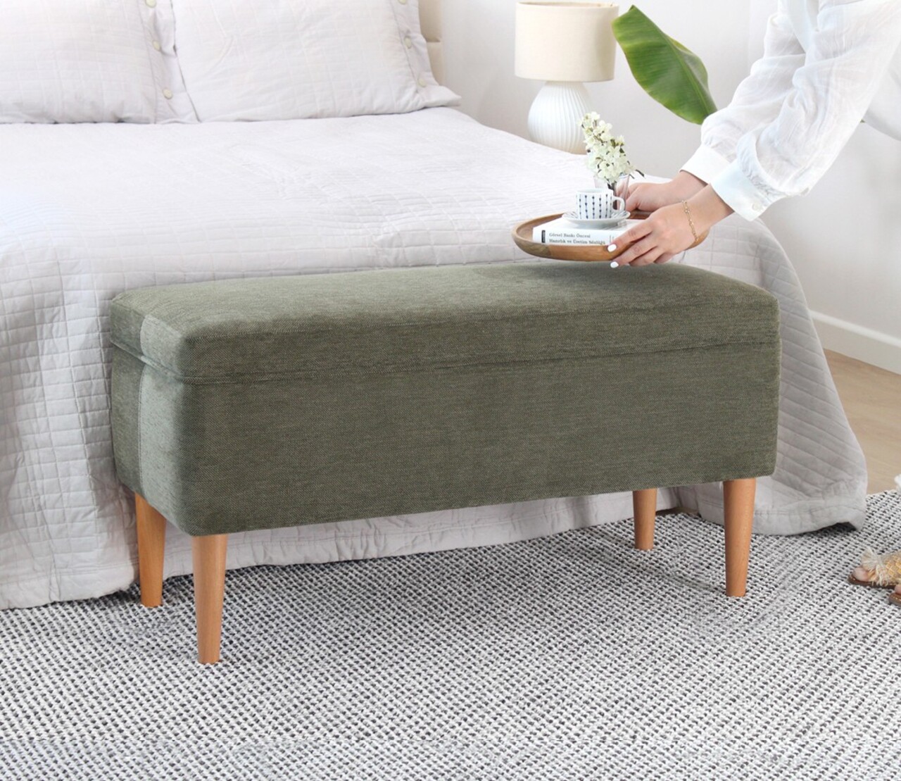 Taburet, Atelier del Sofa, 209FLF1411, 50% bumbac, 50% in, Verde