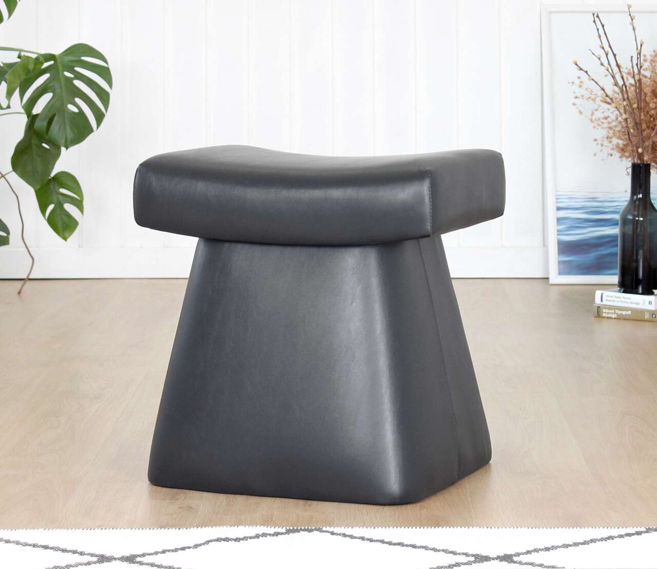 Taburet, Atelier del Sofa, 209FLF1444, Piele ecologica, Negru