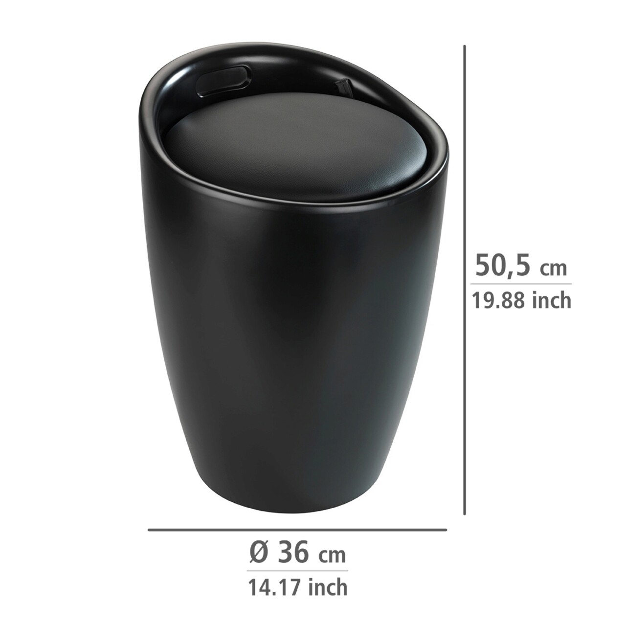 Taburet baie, Wenko, Candy Black Matt, cos de rufe inclus, 36 x 50.5 x 36 cm, plastic/poliester, negru