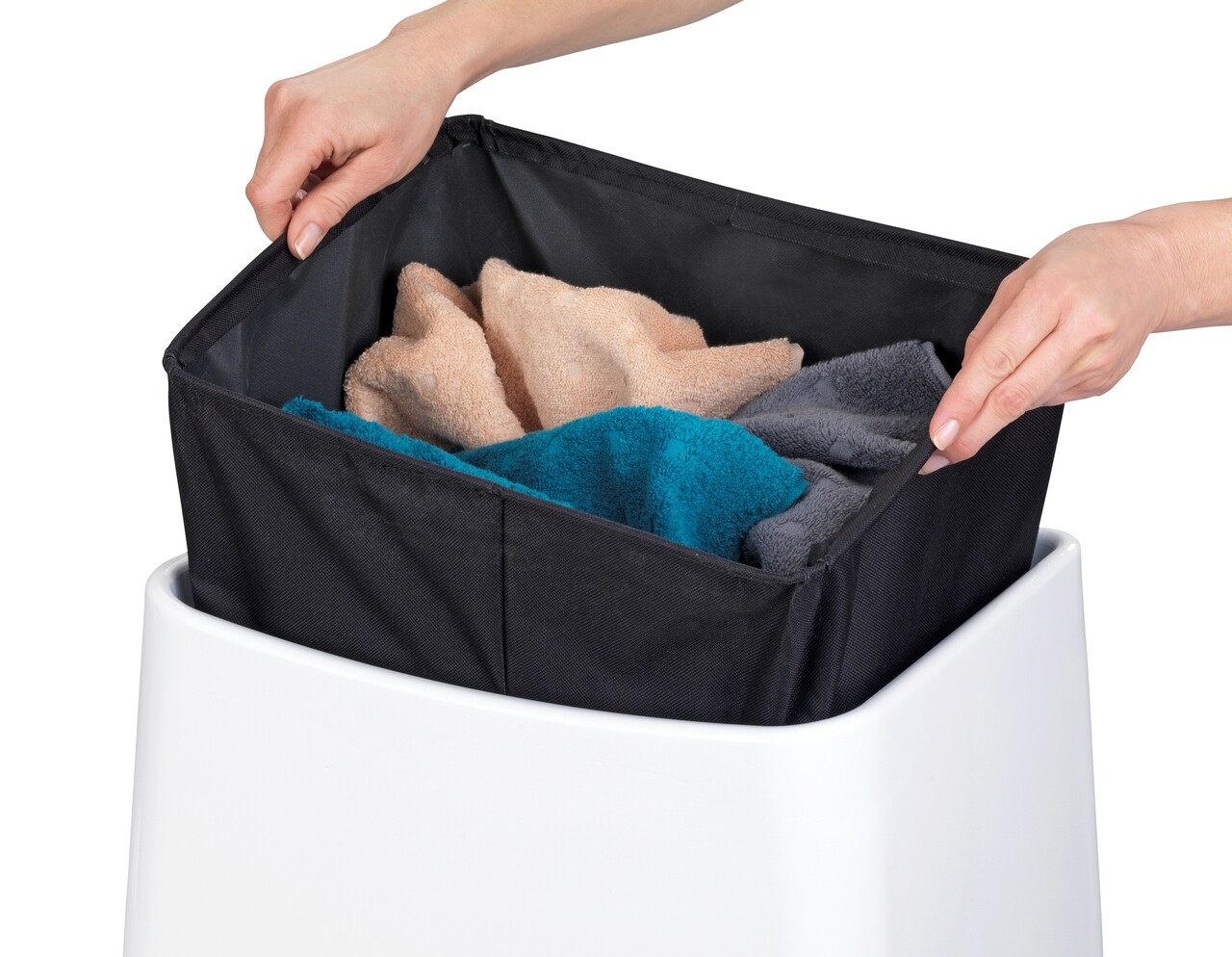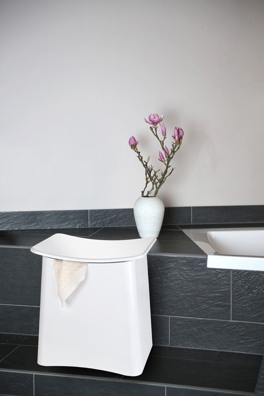 Taburetul practic de baie are mult loc pentru rufe in sacul de rufe incorporat. Sacul de rufe detasabil cu o capacitate de 33 de litri ofera spatiu amplu pentru depozitarea rufelor pana in urmatoarea zi de spalare. Scaunul mai poate fi utilizat ca spatiu de depozitare pentru diferite accesorii.