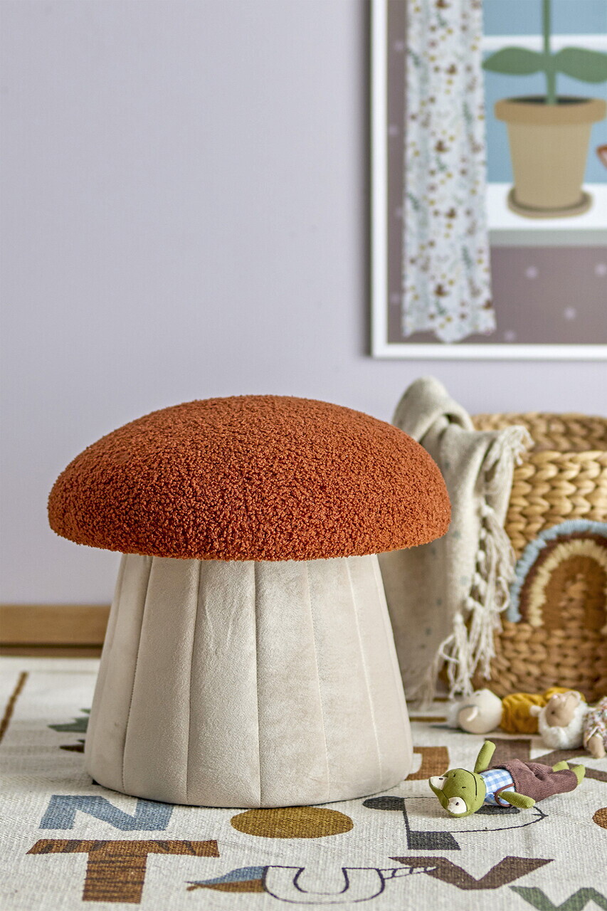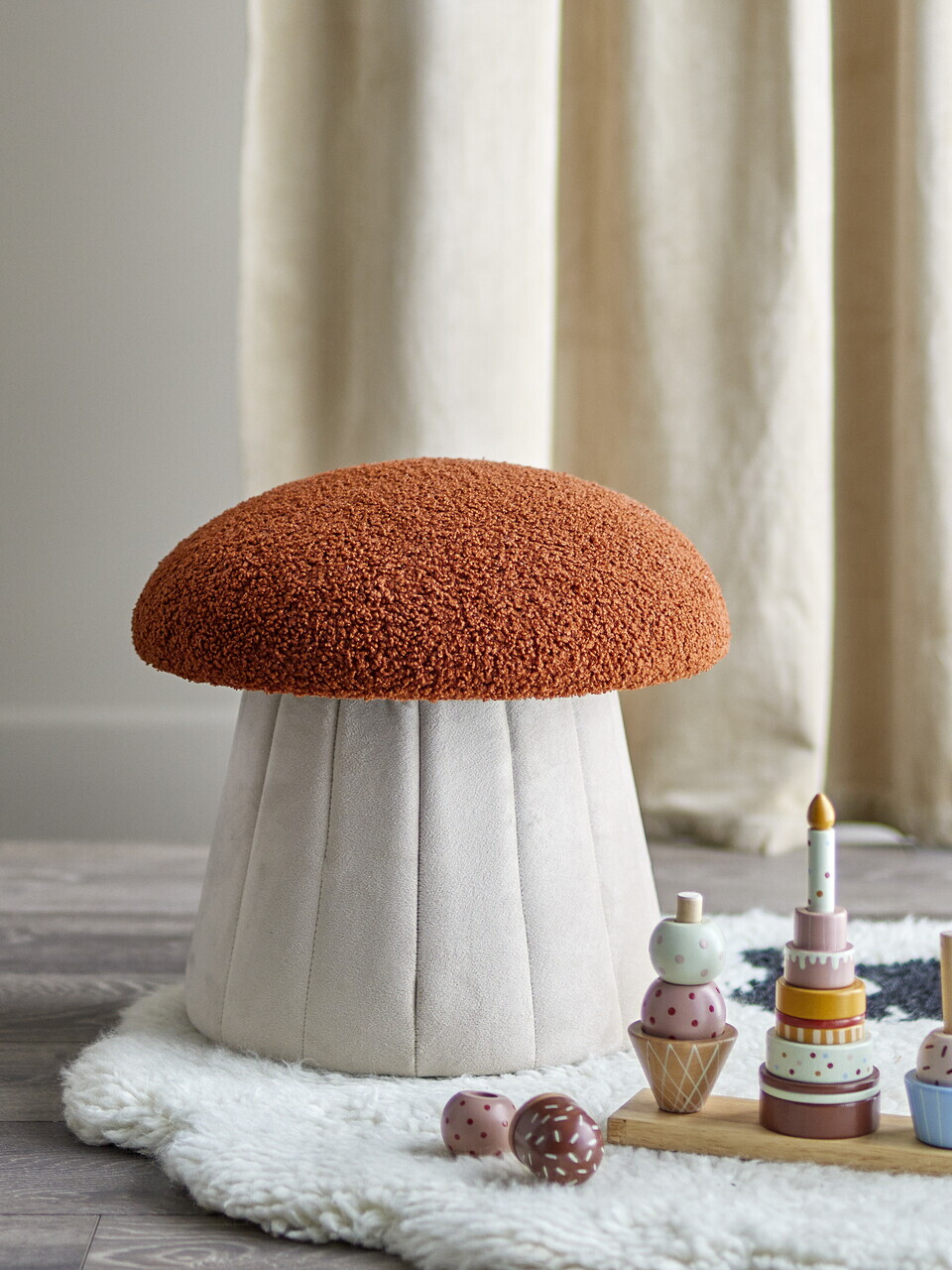 Taburet, Bloomingville, Bertil, 37x35 cm, MDF/lemn de pin/poliester, rosu/alb antic