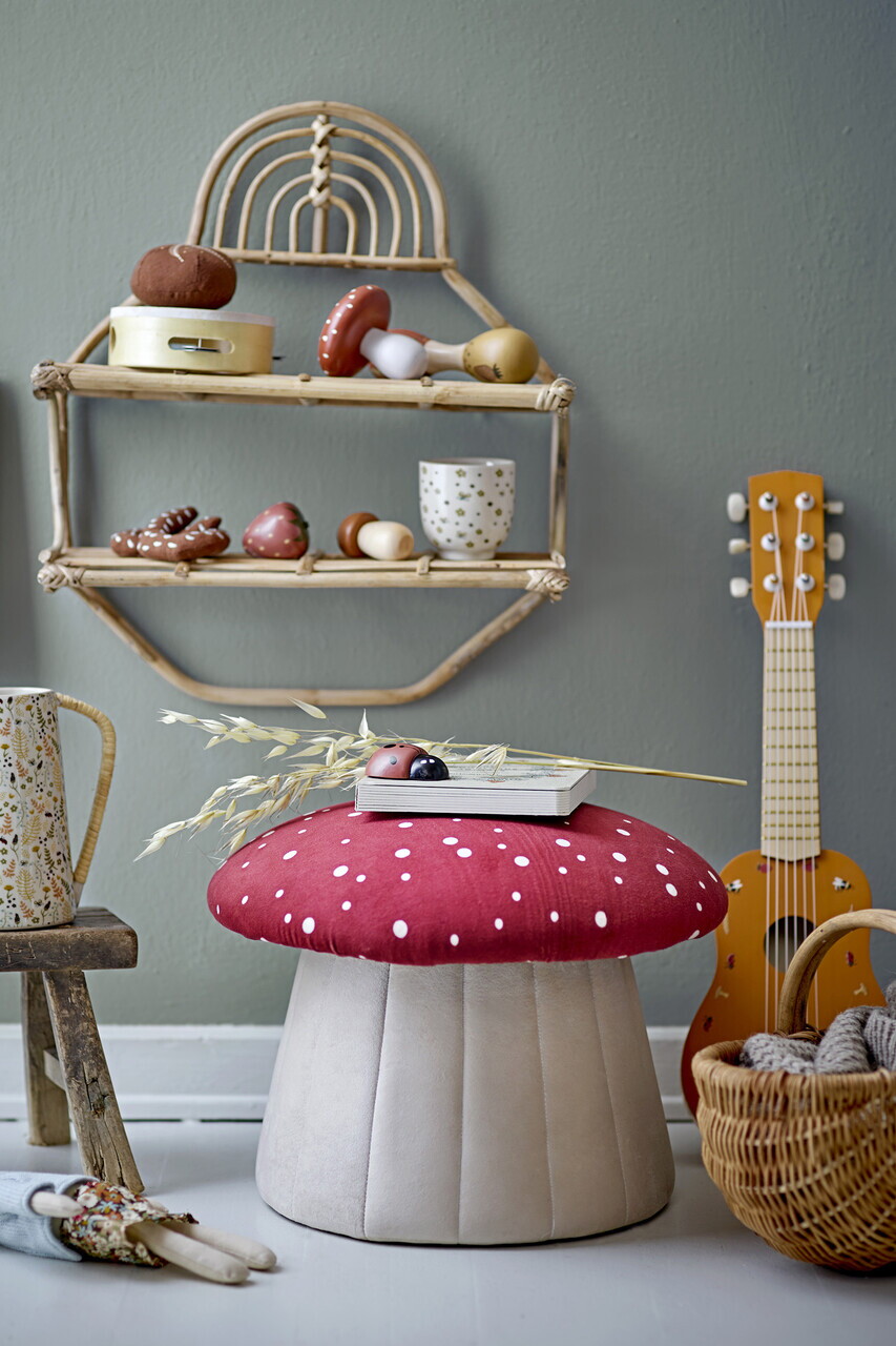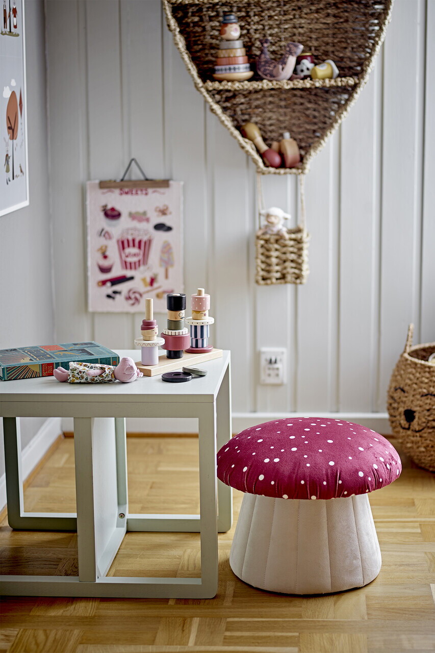 Taburet, Bloomingville, Lue, 37x30 cm, MDF/lemn de pin/poliester, rosu/alb antic