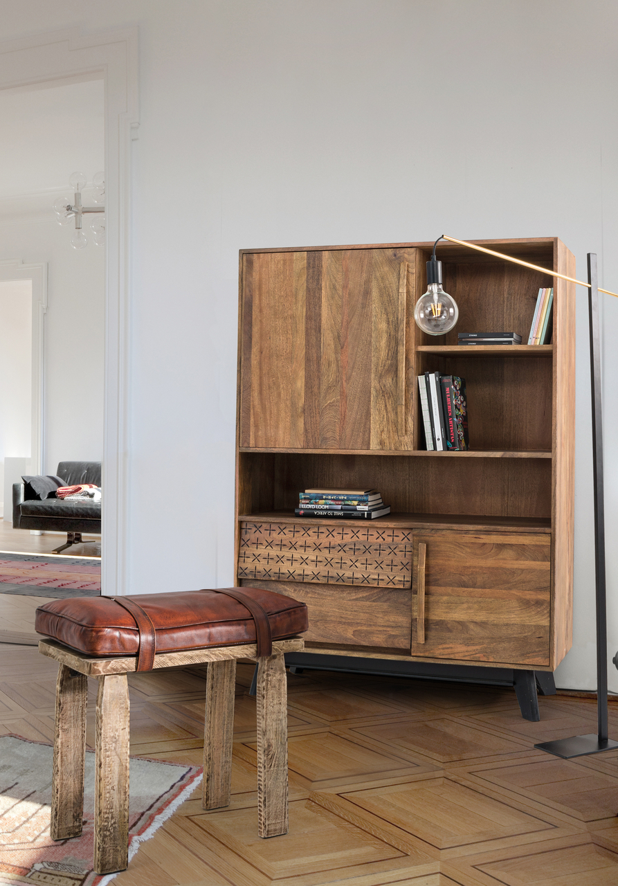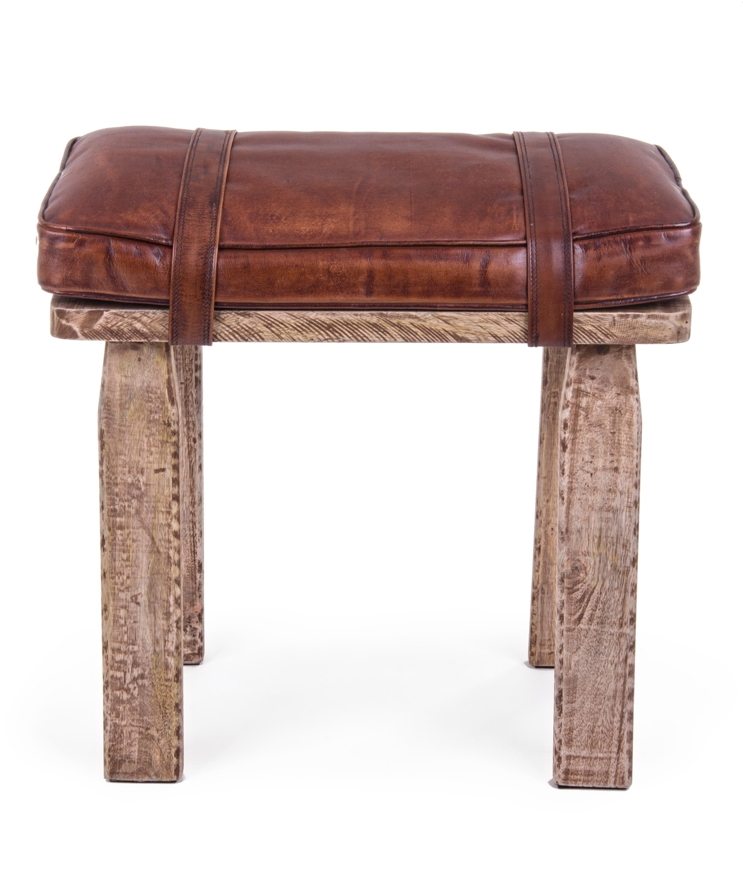 Taburet Charleston, Bizzotto, 54 x 30 x 53 cm, piele de bivol/lemn de mango