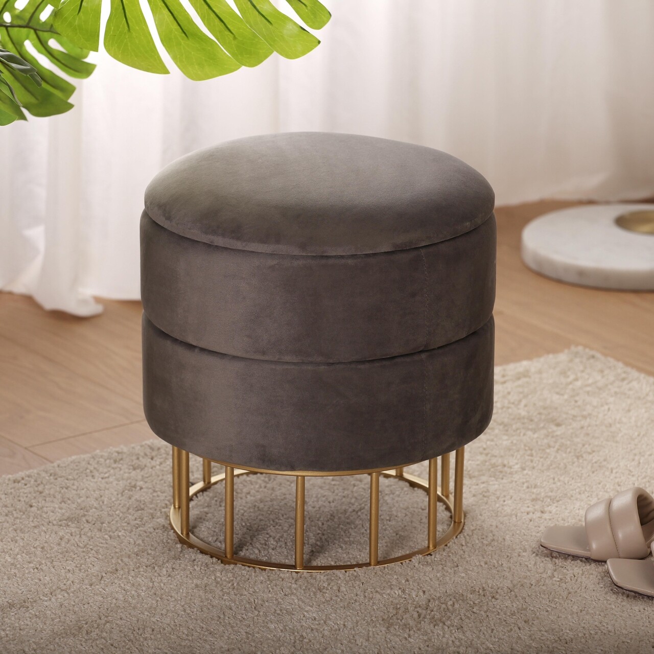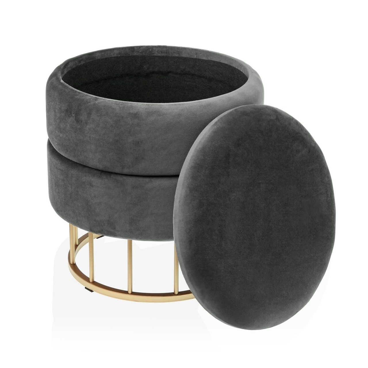 Taburet cu spatiu de depozitare Athena, Versa, 38 x 38 x 41 cm, catifea, maro inchis