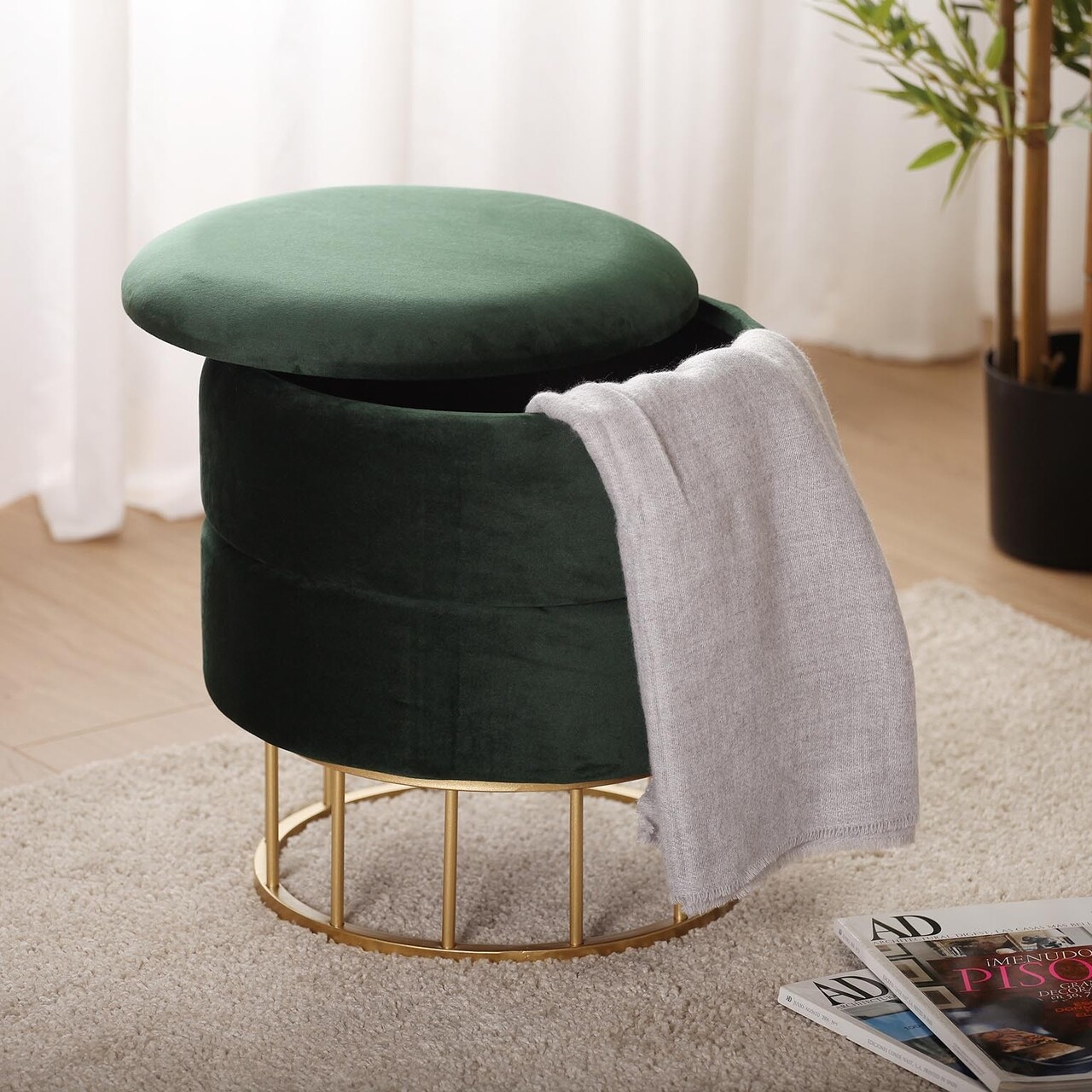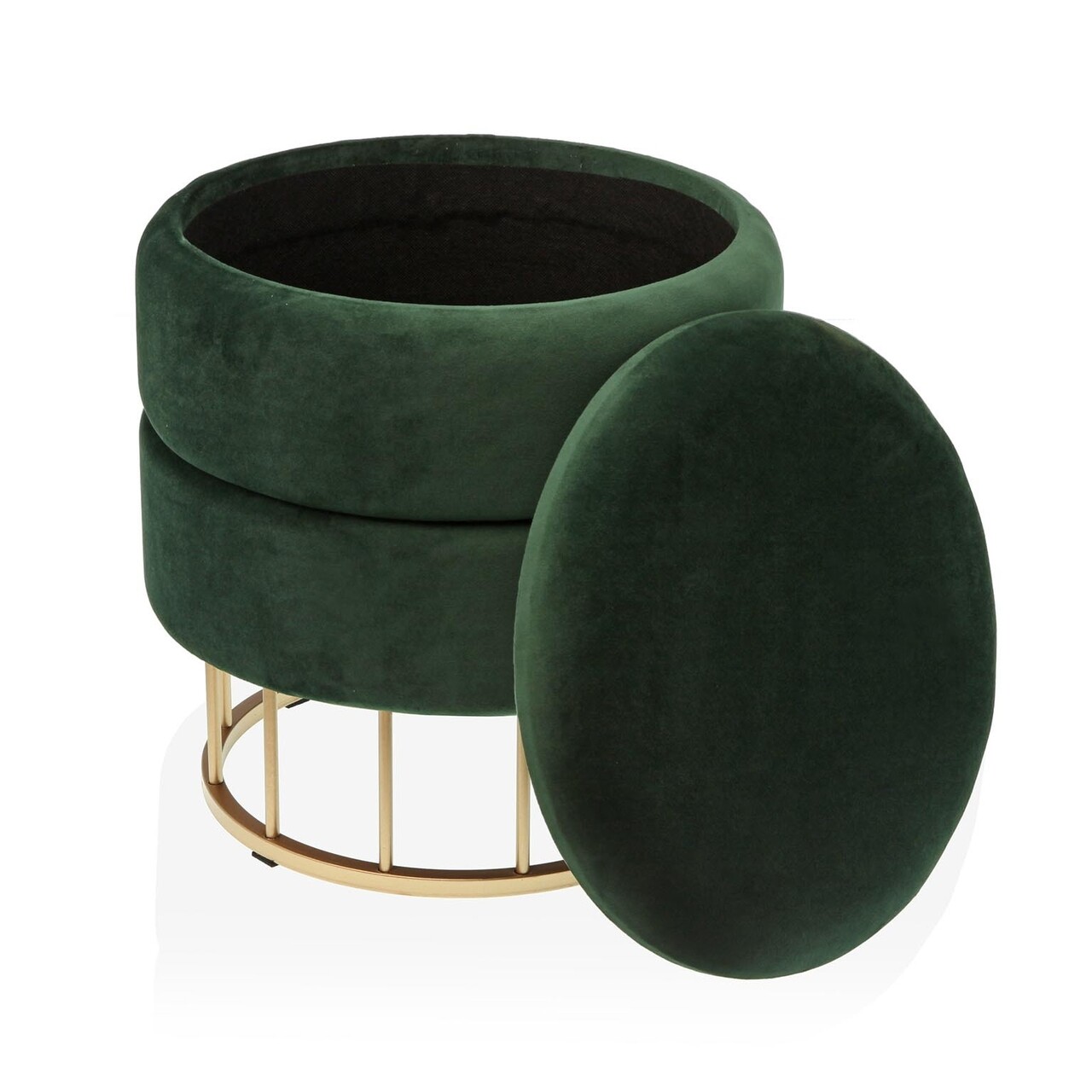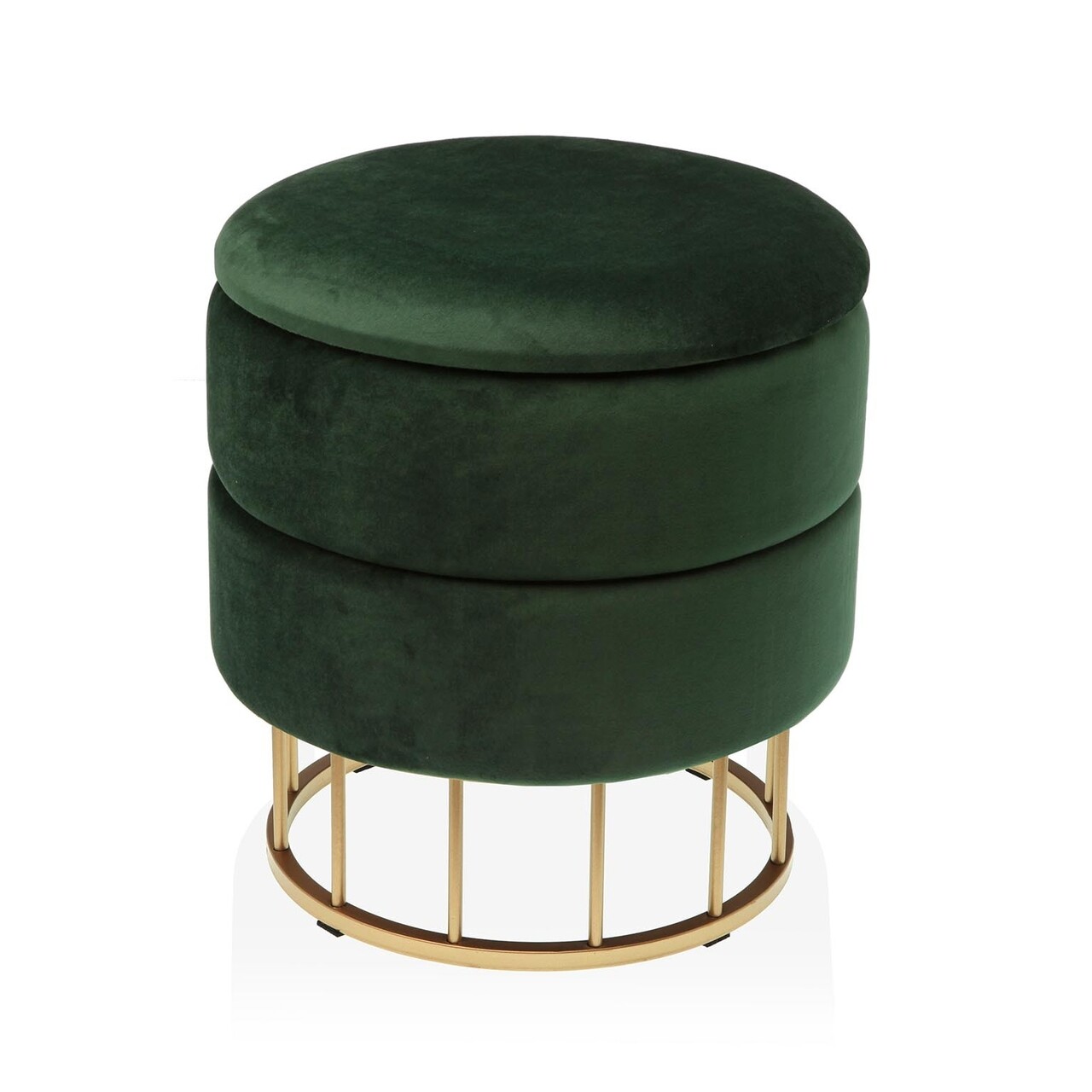 Taburet cu spatiu de depozitare Athena, Versa, 38 x 38 x 41 cm, catifea, verde