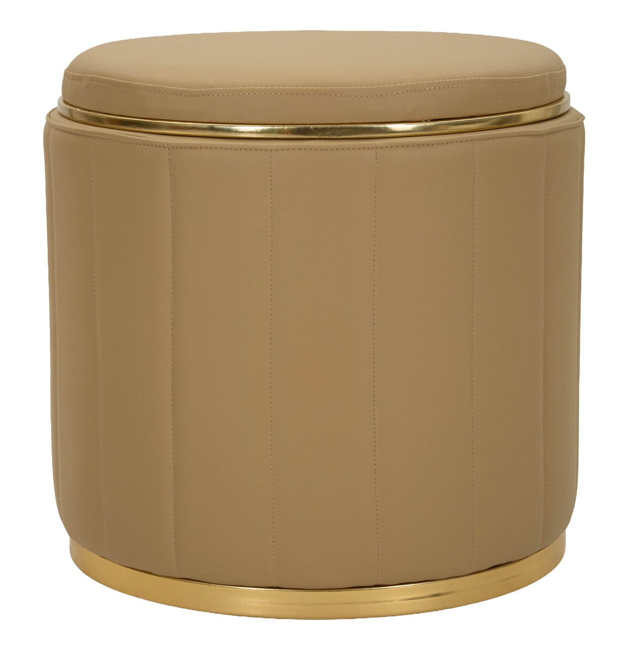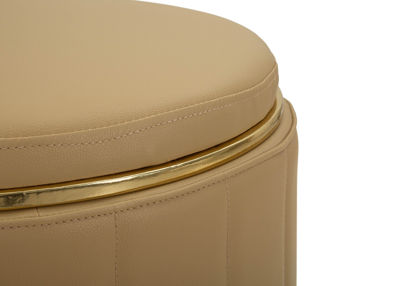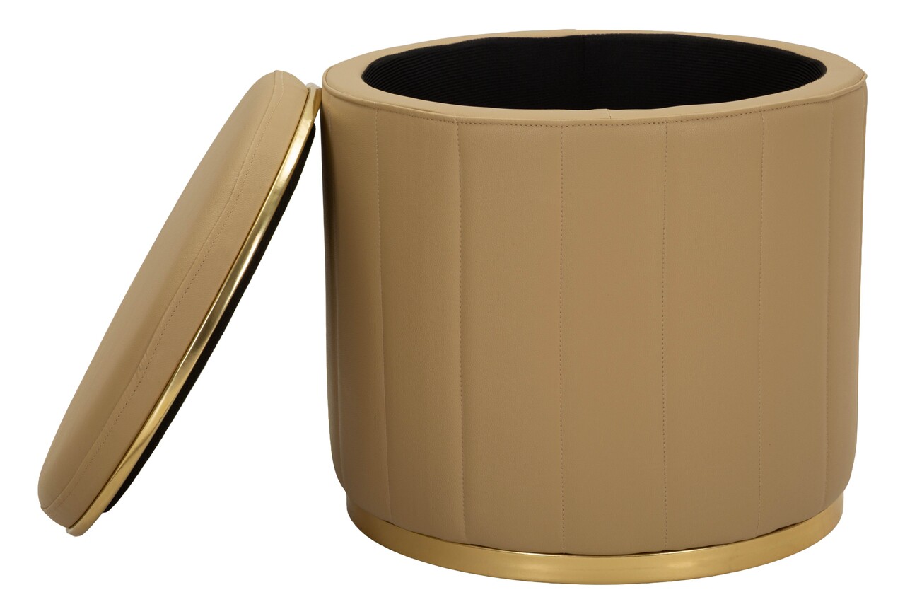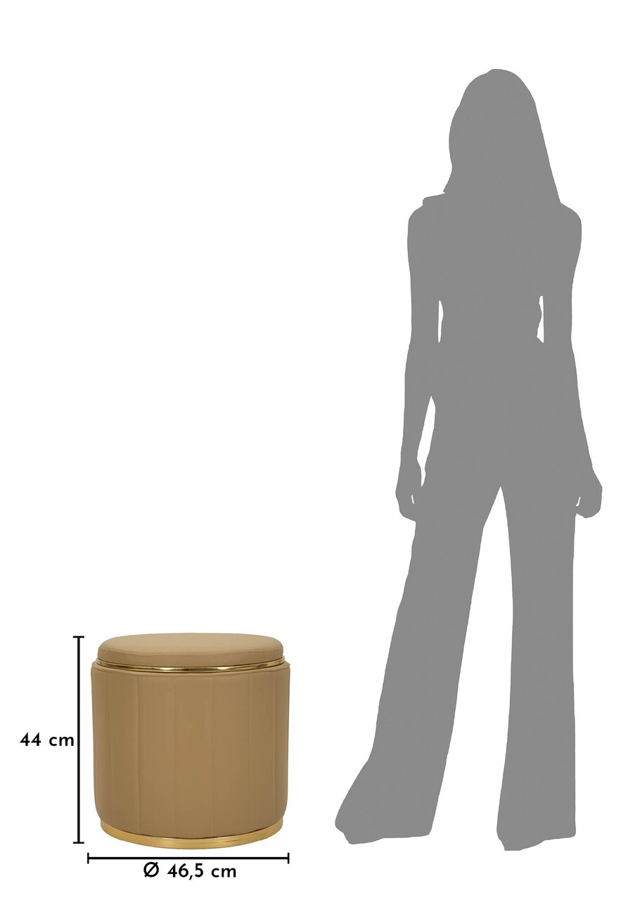 Taburet cu spatiu de depozitare, Mauro Ferretti, London, 46.5x44 cm, lemn de pin/piele ecologica, maro/auriu