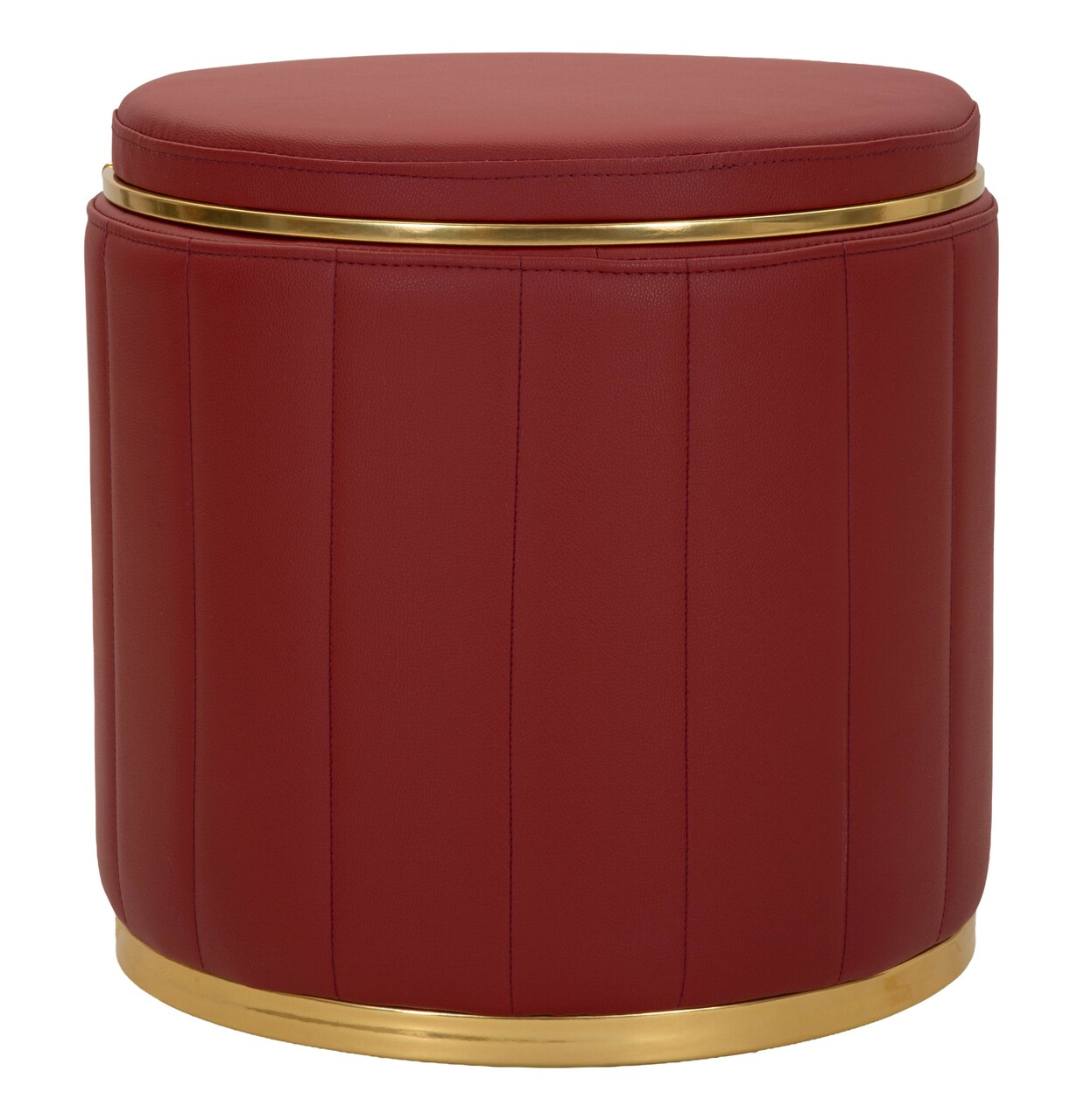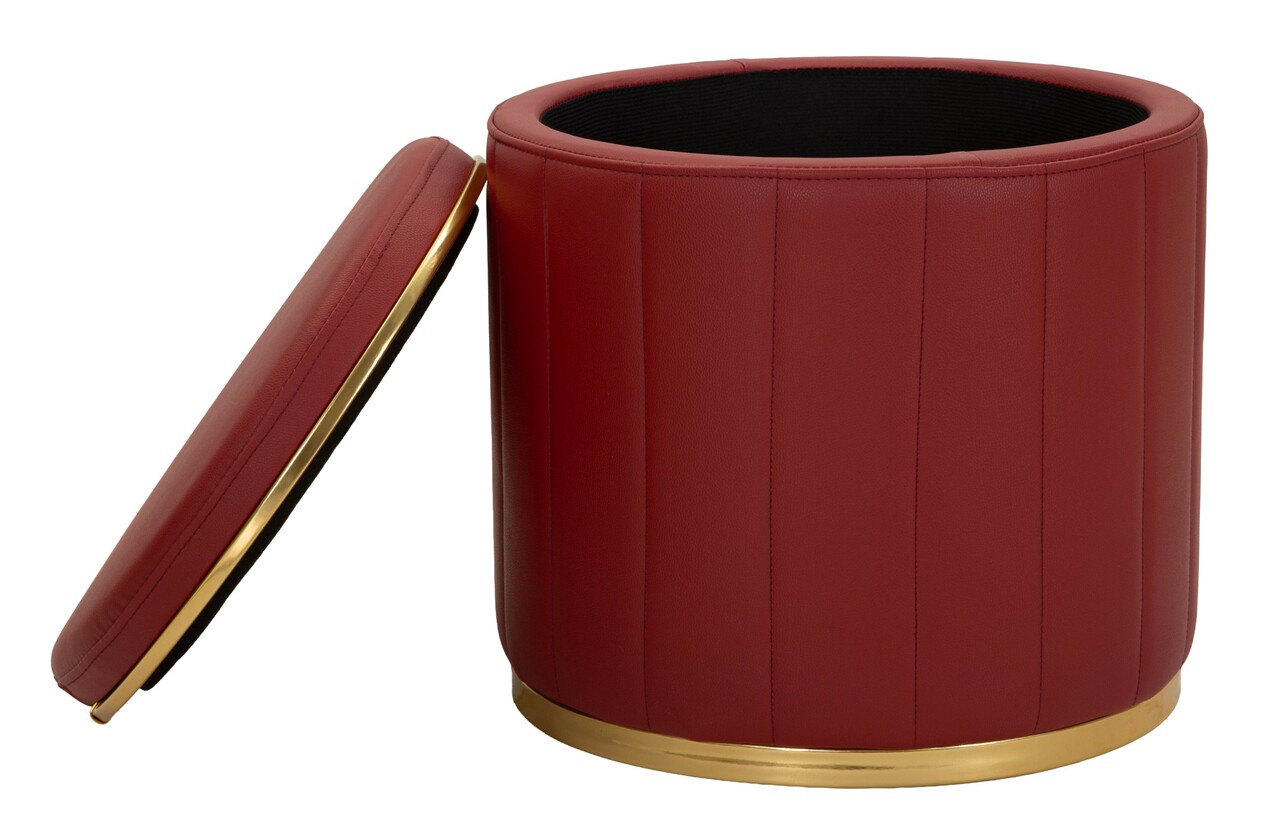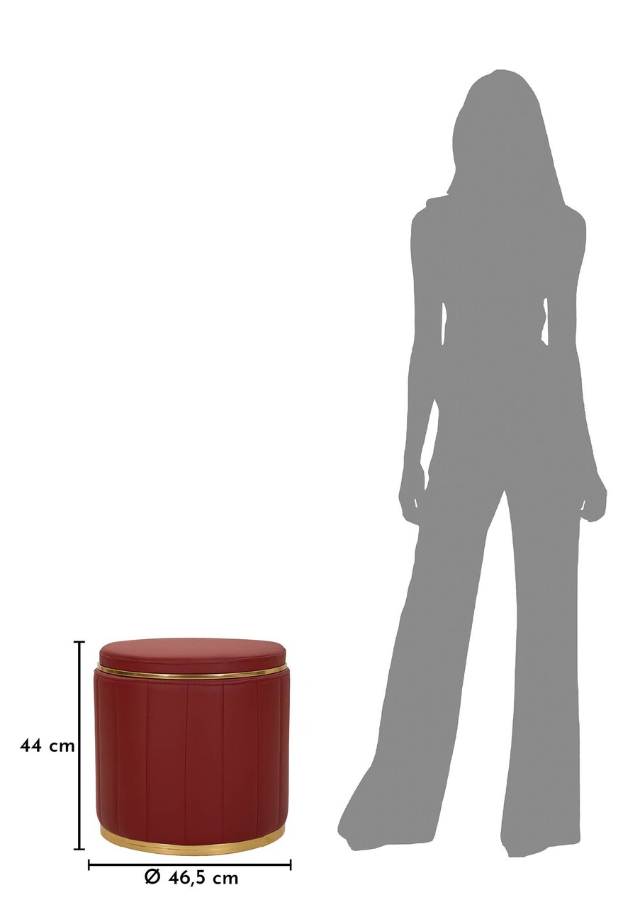 Taburet cu spatiu de depozitare, Mauro Ferretti, London, 46.5x44 cm, lemn de pin/piele ecologica, rosu/auriu