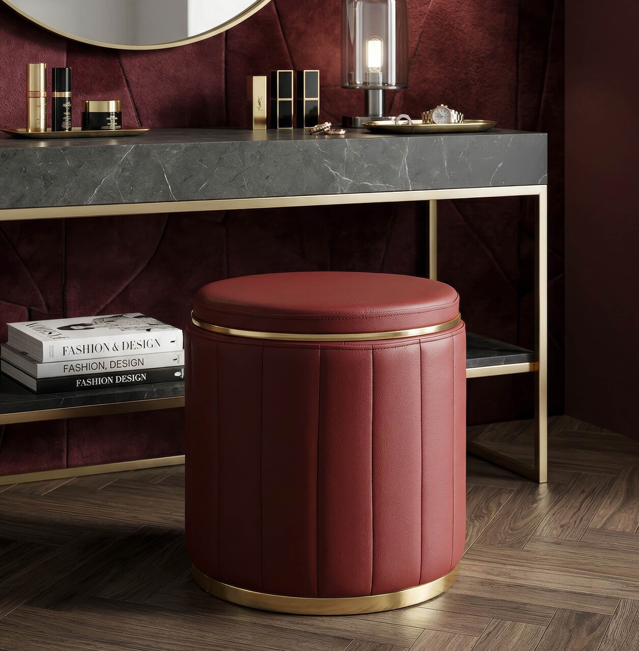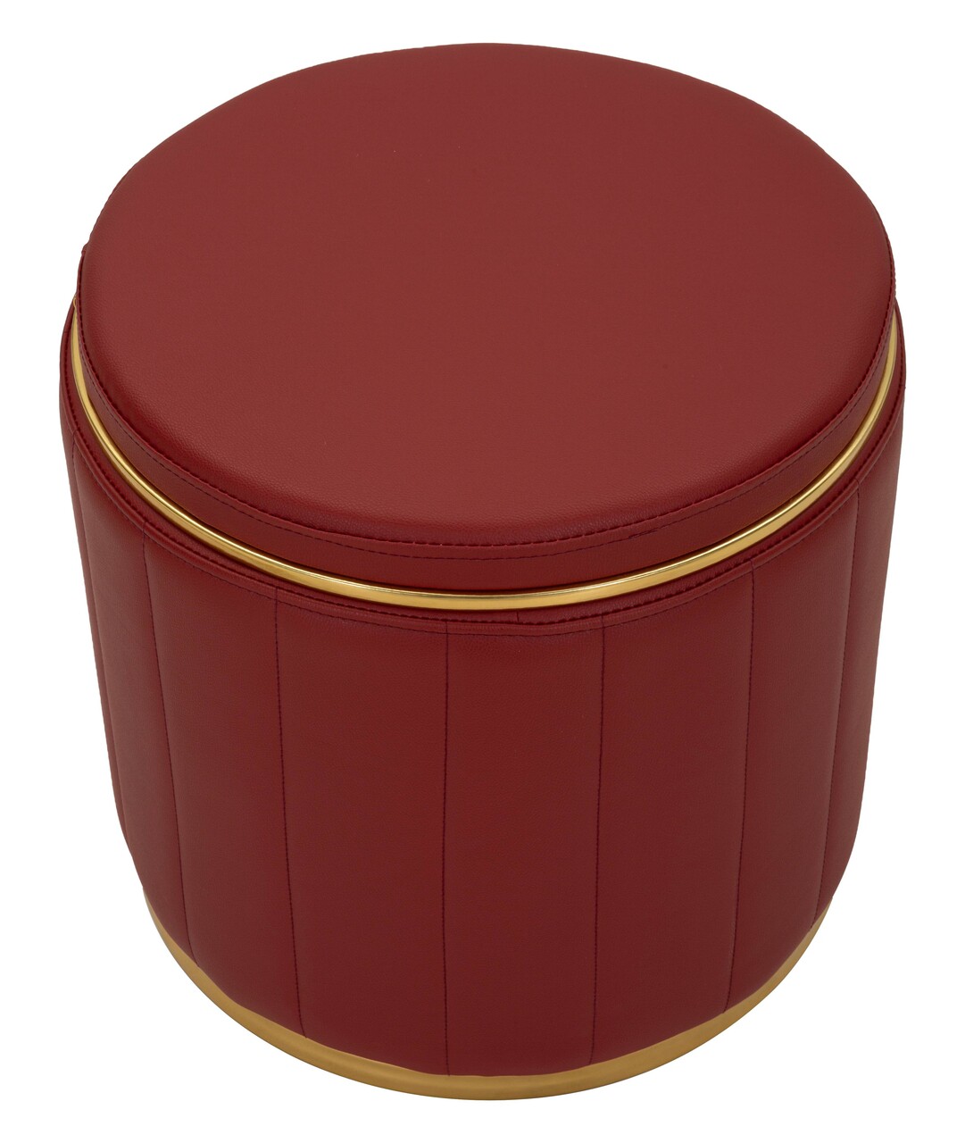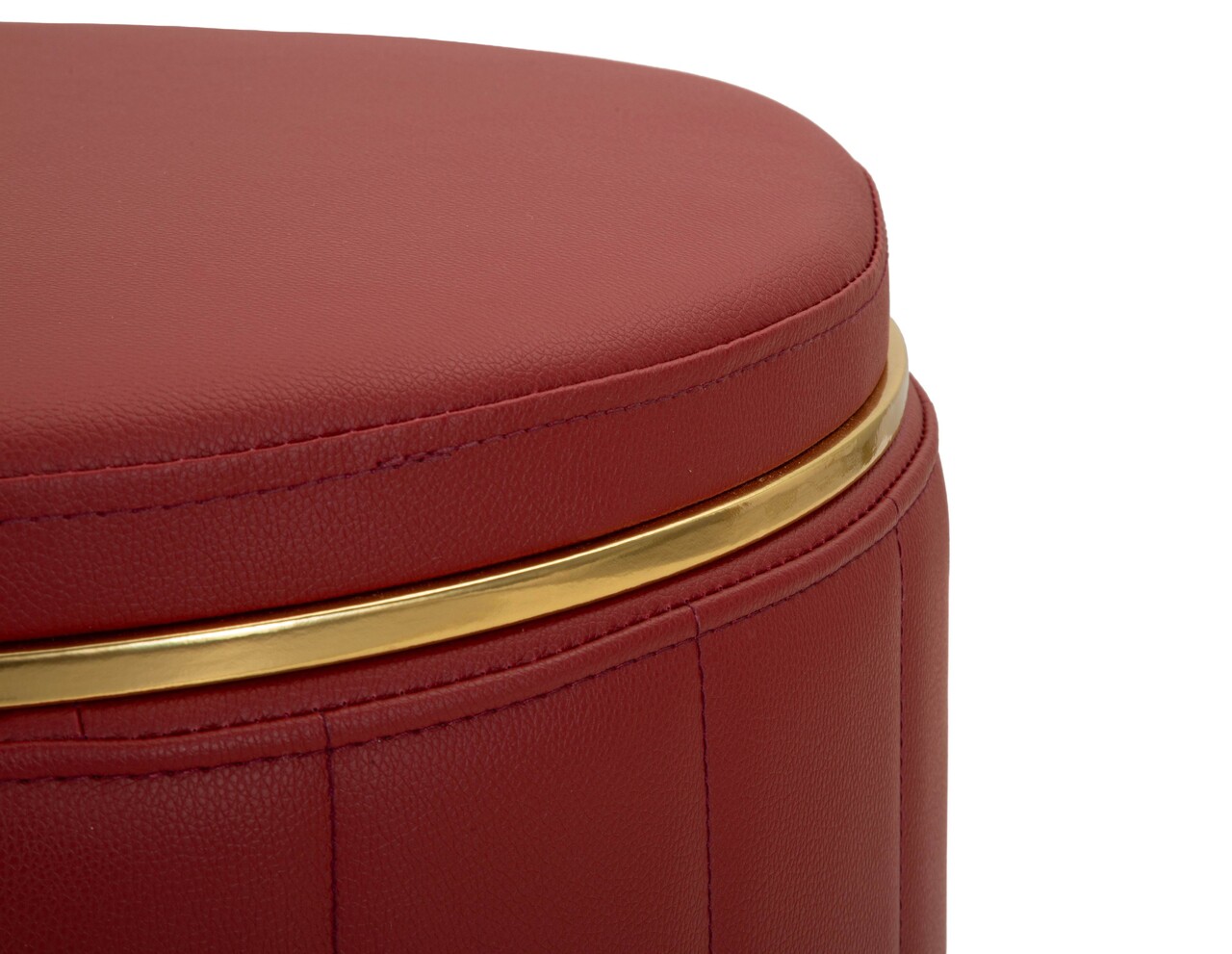 Taburet cu spatiu de depozitare, Mauro Ferretti, London, 46.5x44 cm, lemn de pin/piele ecologica, rosu/auriu