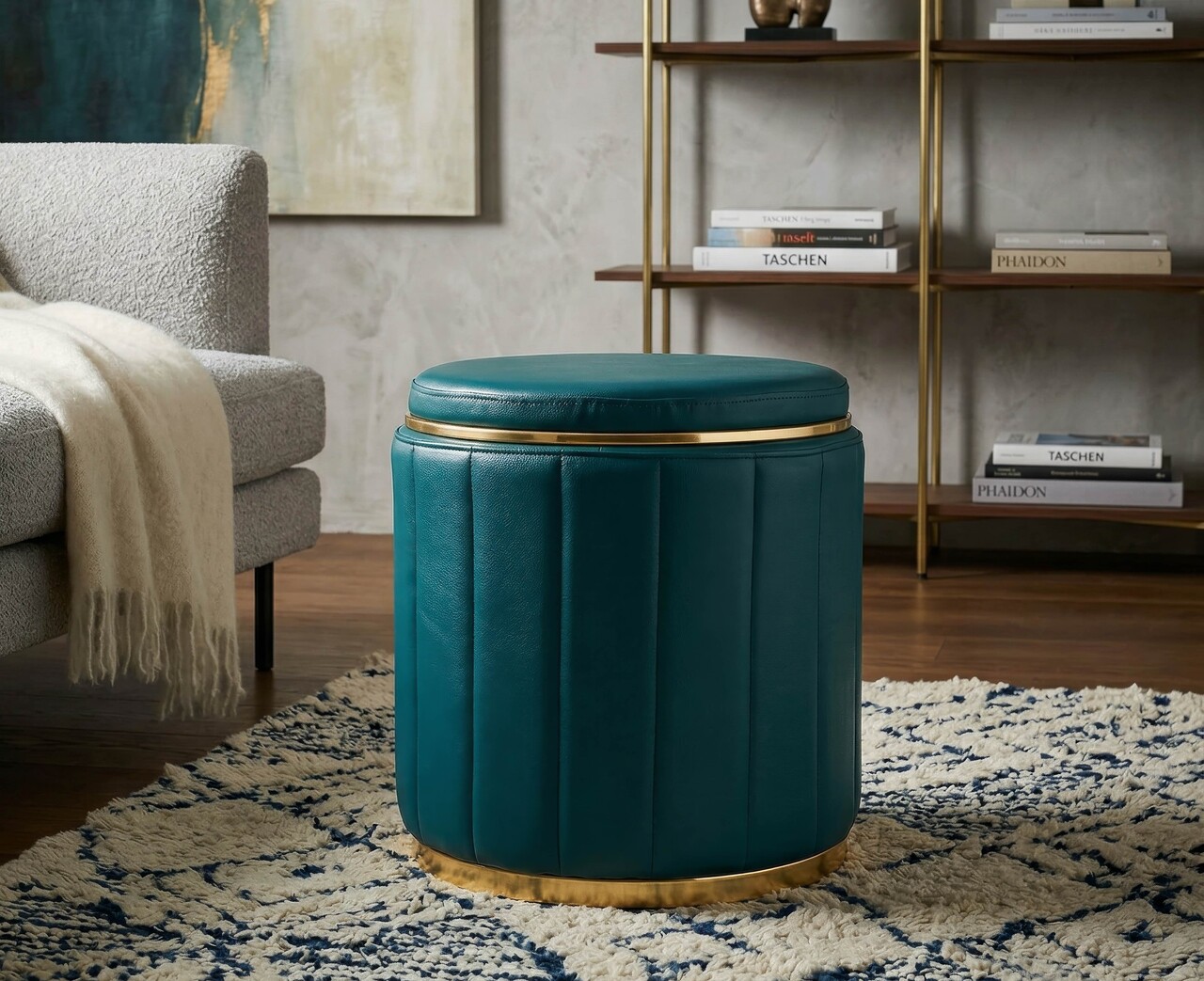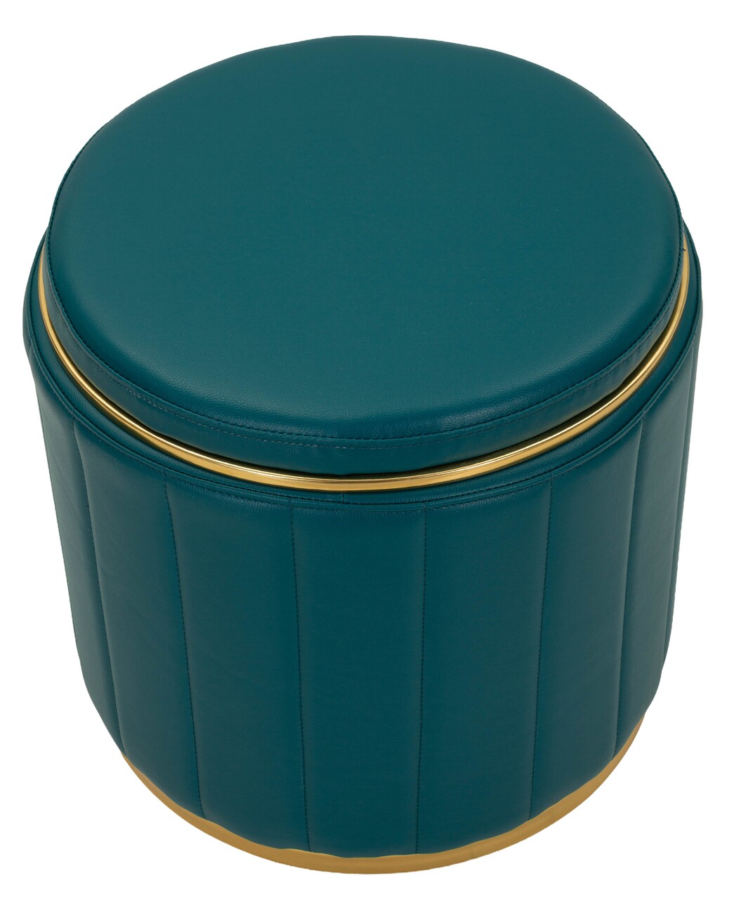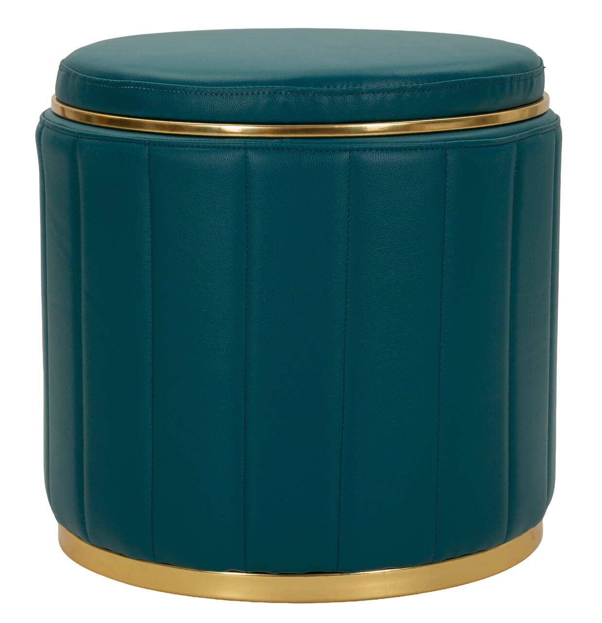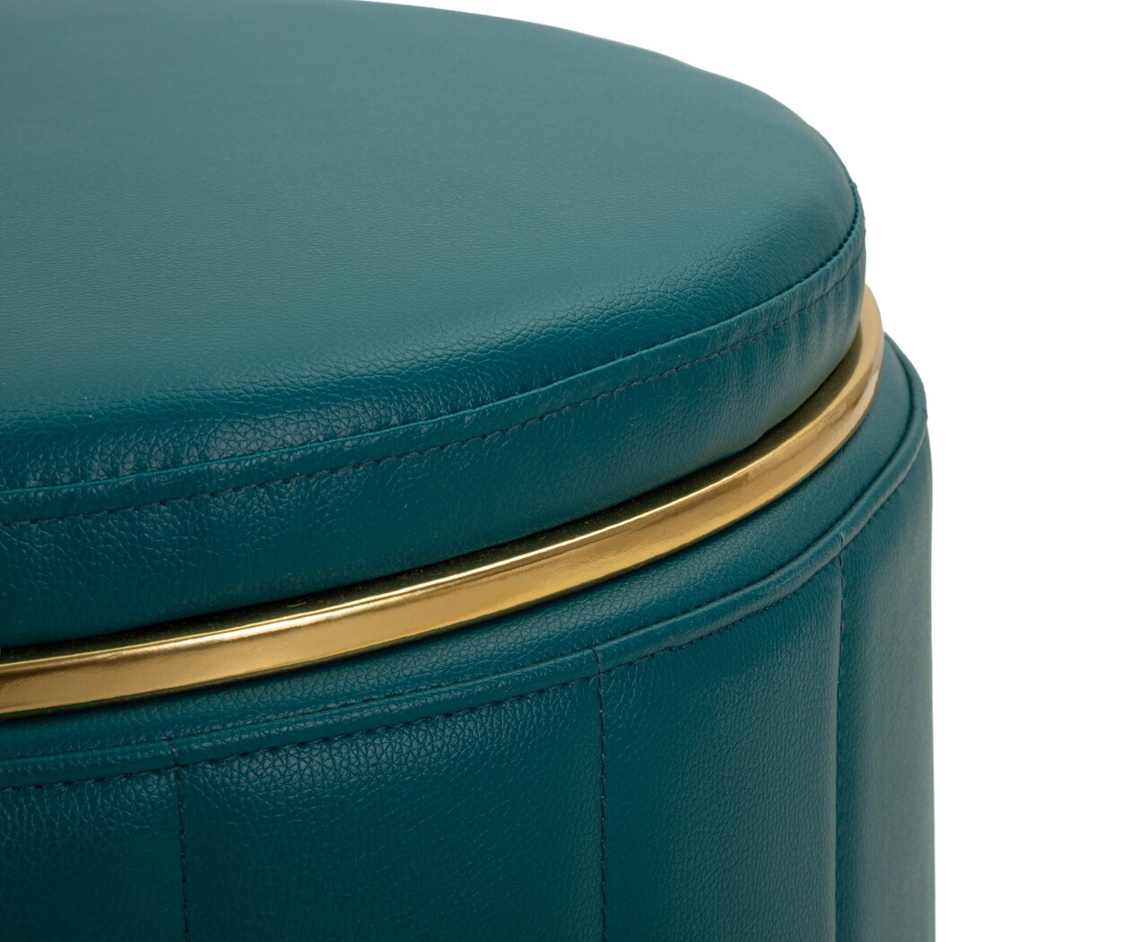 Taburet cu spatiu de depozitare, Mauro Ferretti, London, 46.5x44 cm, lemn de pin/piele ecologica, turcoaz/auriu