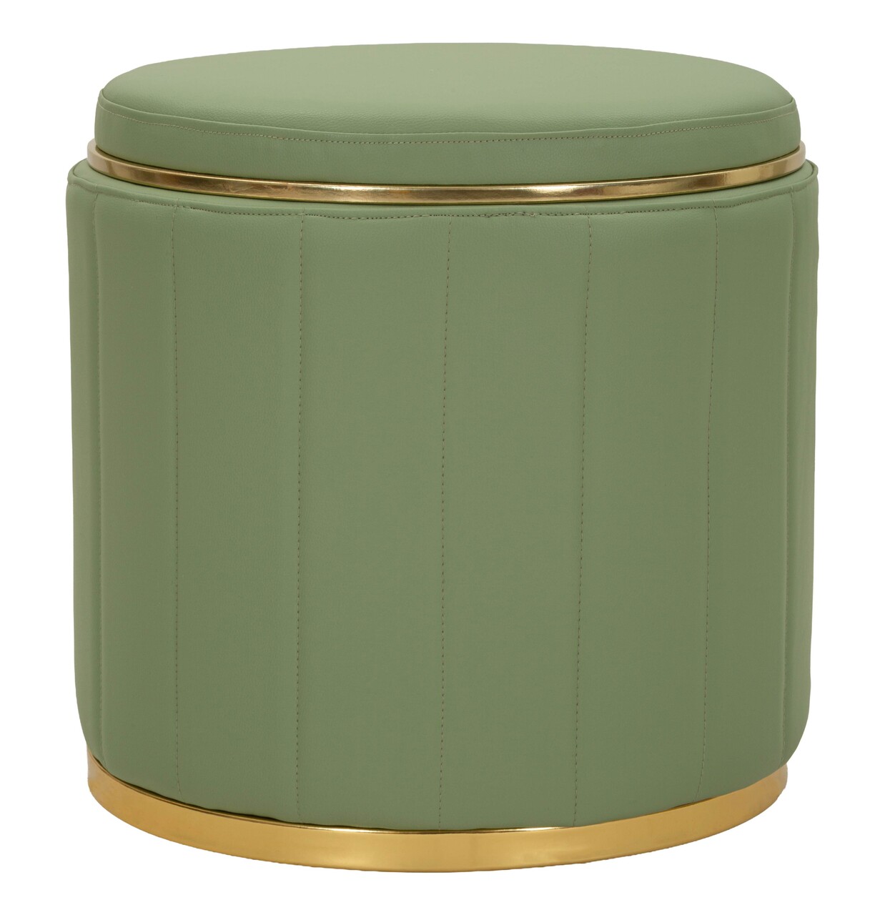 Taburet cu spatiu de depozitare, Mauro Ferretti, London, 46.5x44 cm, lemn de pin/piele ecologica, verde/auriu