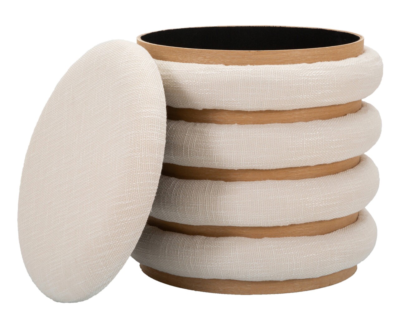 Taburet Damasco Line, Mauro Ferretti, Ø40 x 42 cm, MDF/bumbac/poliester, natural