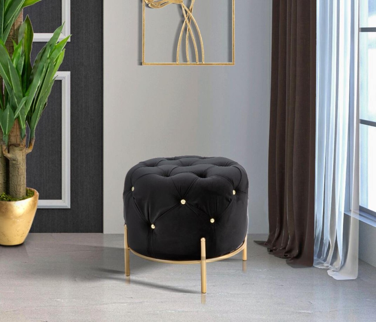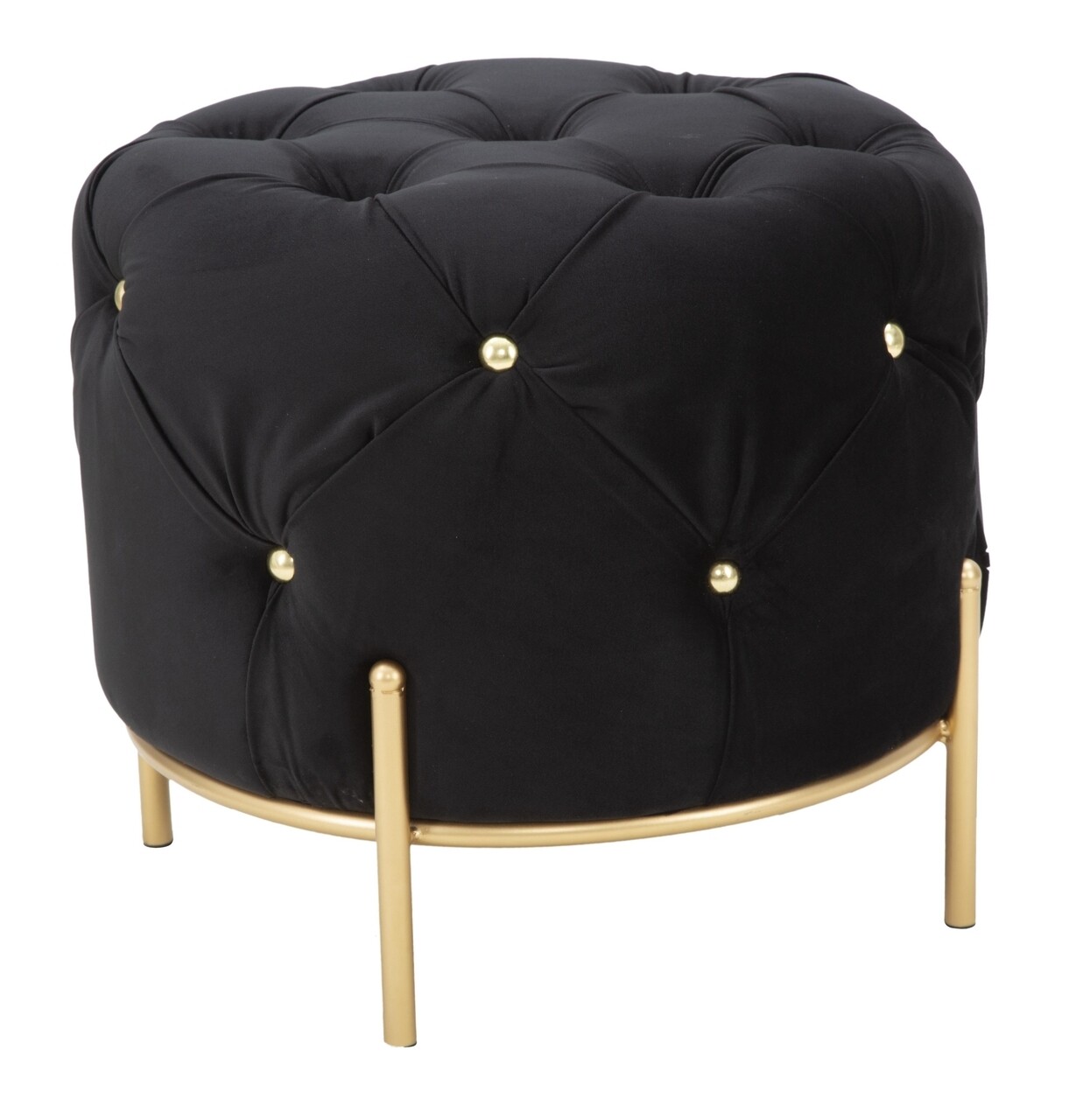 Taburet Diamond Glam, Mauro Ferretti, Ø 45x40 cm, catifea, negru/auriu