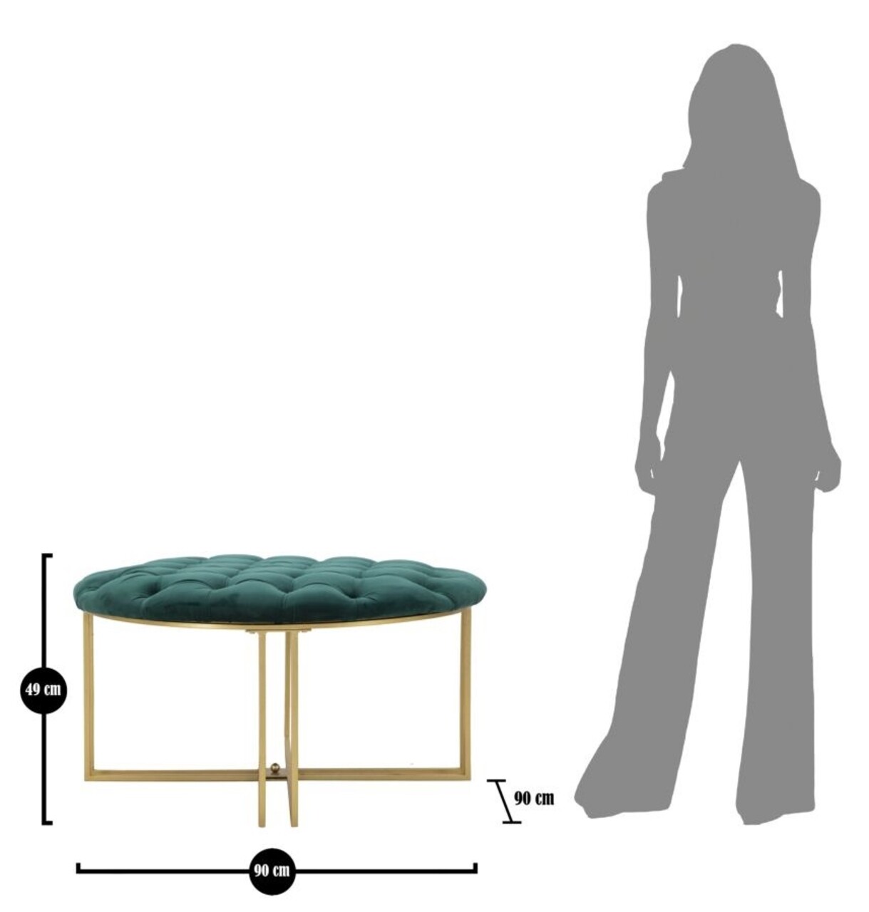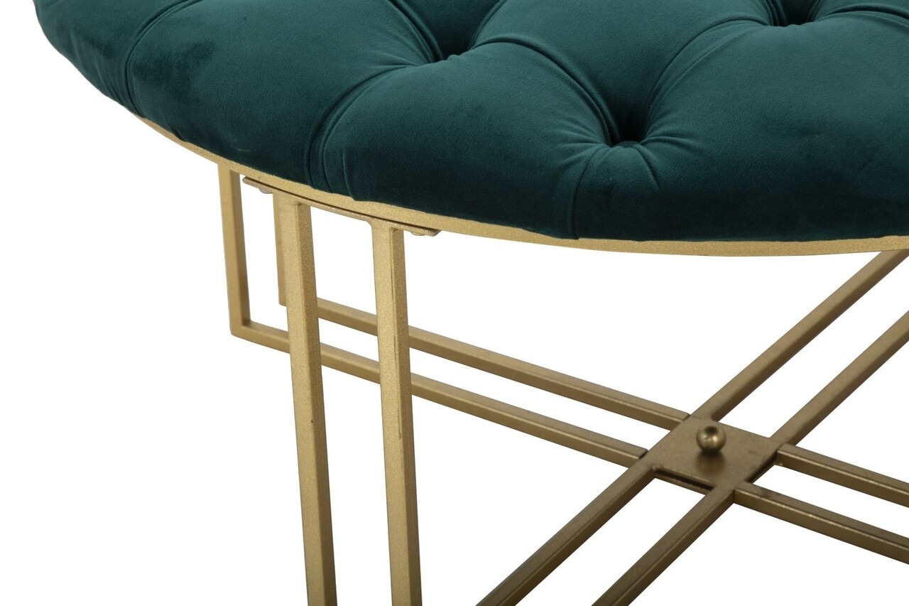 Taburet cu structura din metal auriu si sezut din catifea sintetica captusita si matlasata. Designul simplu si liniar confera o nota de clasa oricarei incaperi.