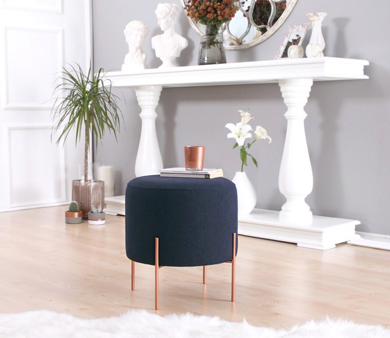 Taburet, Fluffe, 209FLF1181, 50% bumbac, 50% in, Albastru navy
