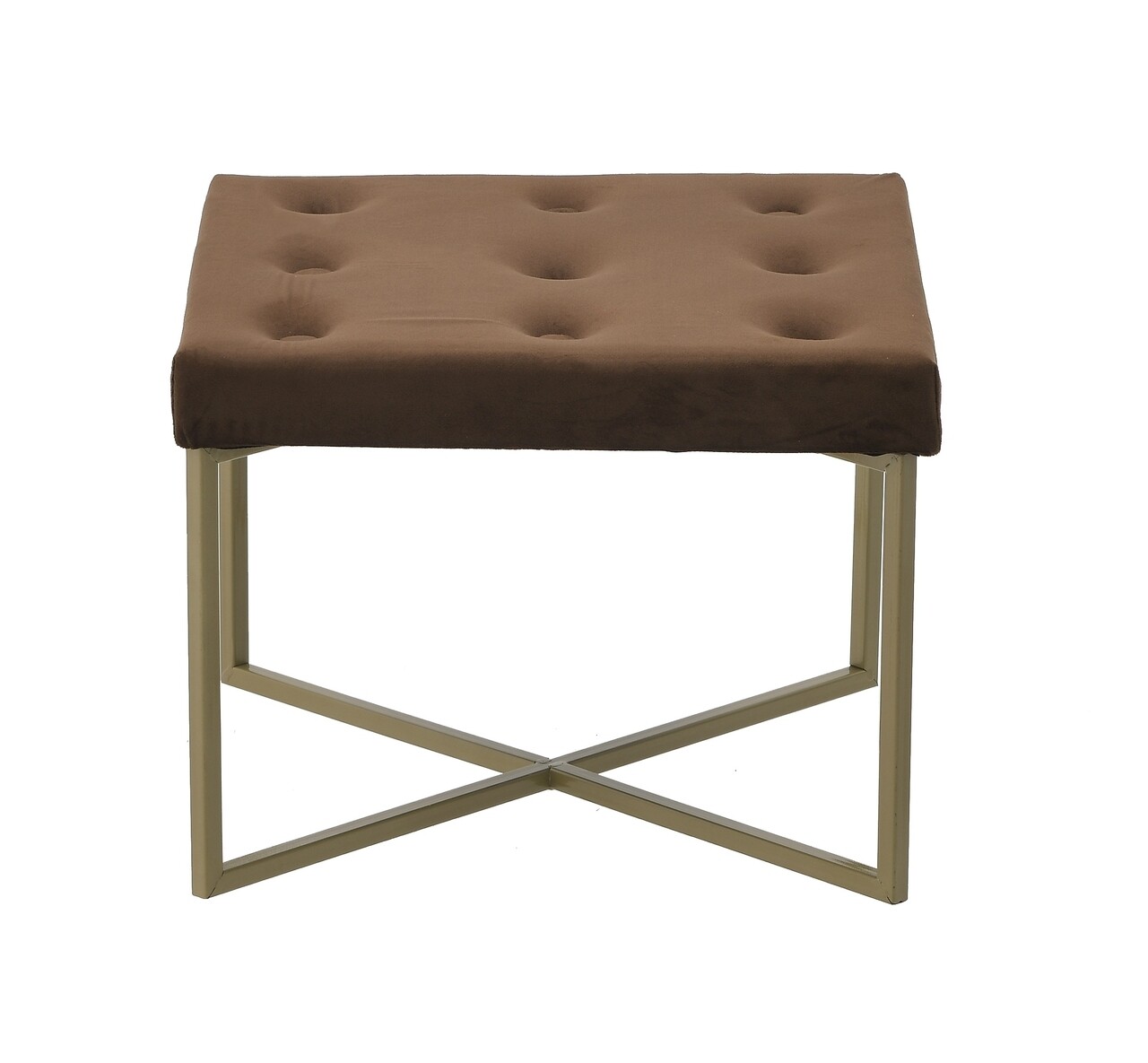 Taburet InArt, 40x40x30 cm, fier/catifea, auriu/maro