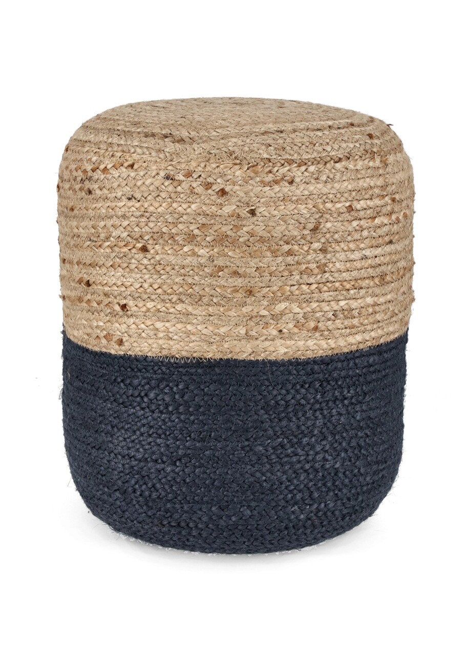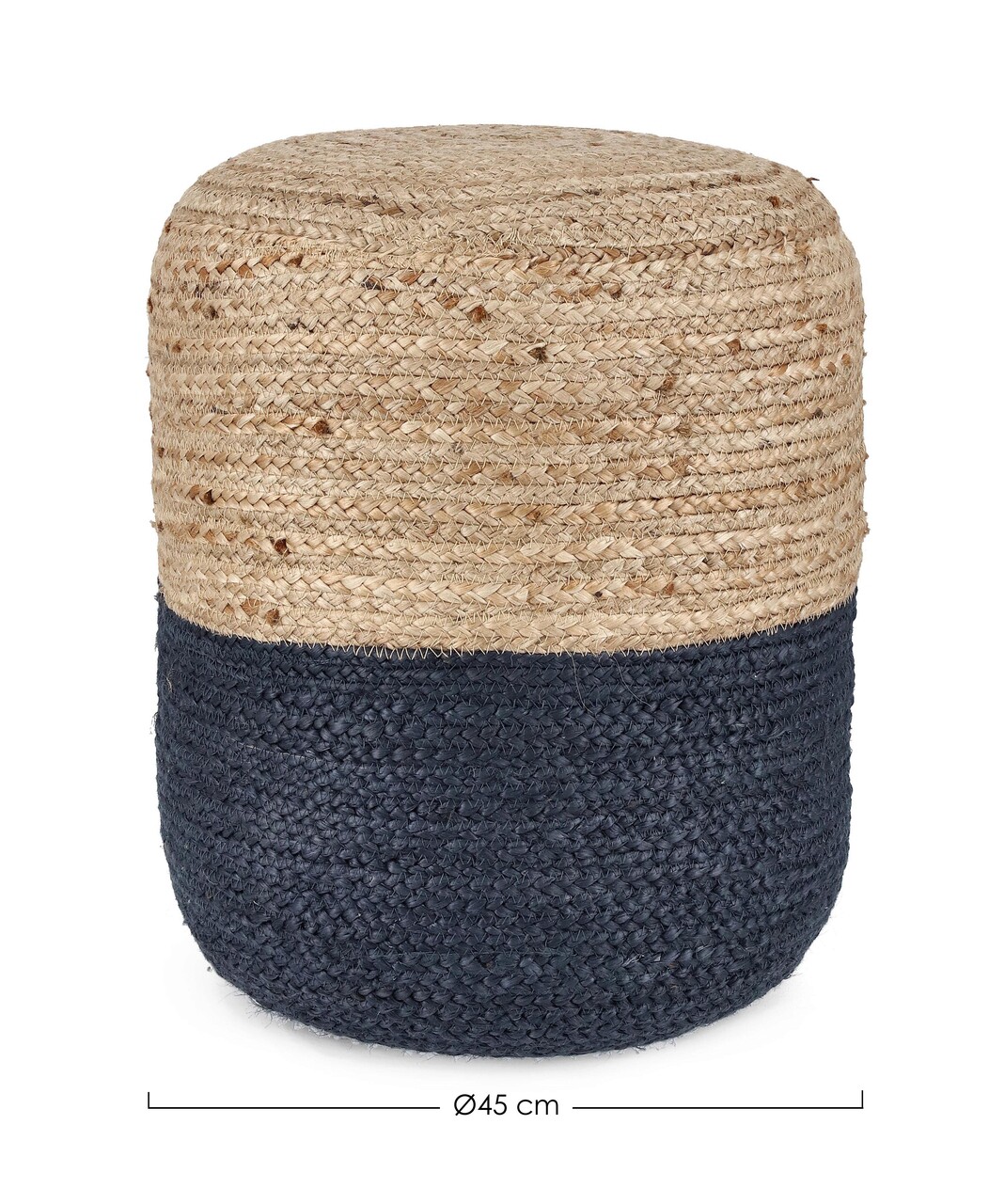 Taburet Jalaja, Bizzotto, D45 cm, iuta/umplutura bile polistiren EPS, natural/albastru